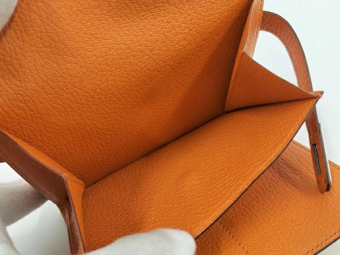 [商品情報]・カラー:オレンジ・素材/ライン:レザー・サイズ:最大約 W13×H12(cm)