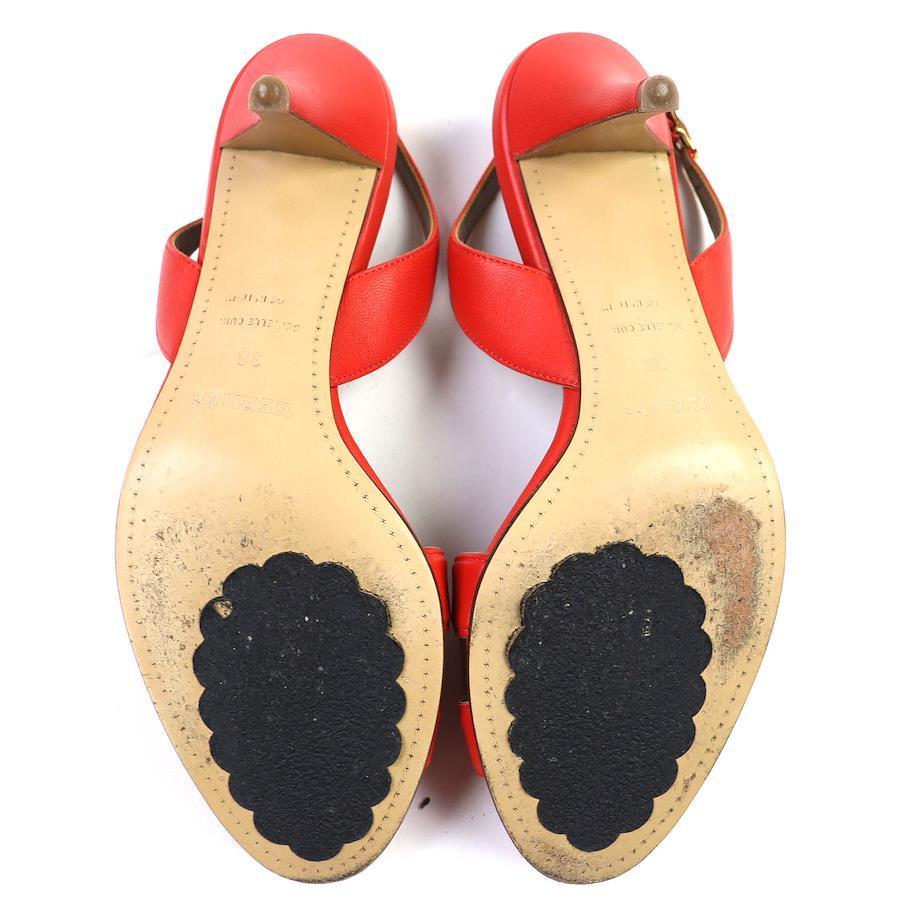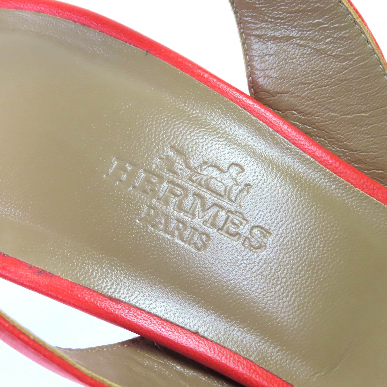 HERMES Knight H Logo Slingback Sandals in Red Leather