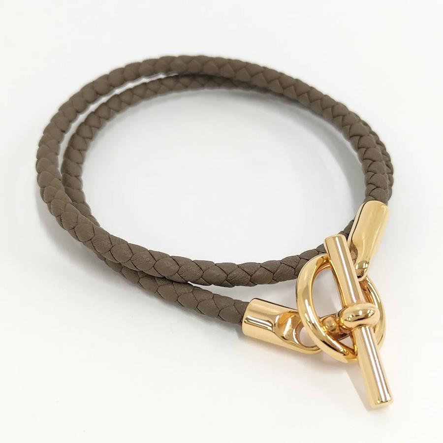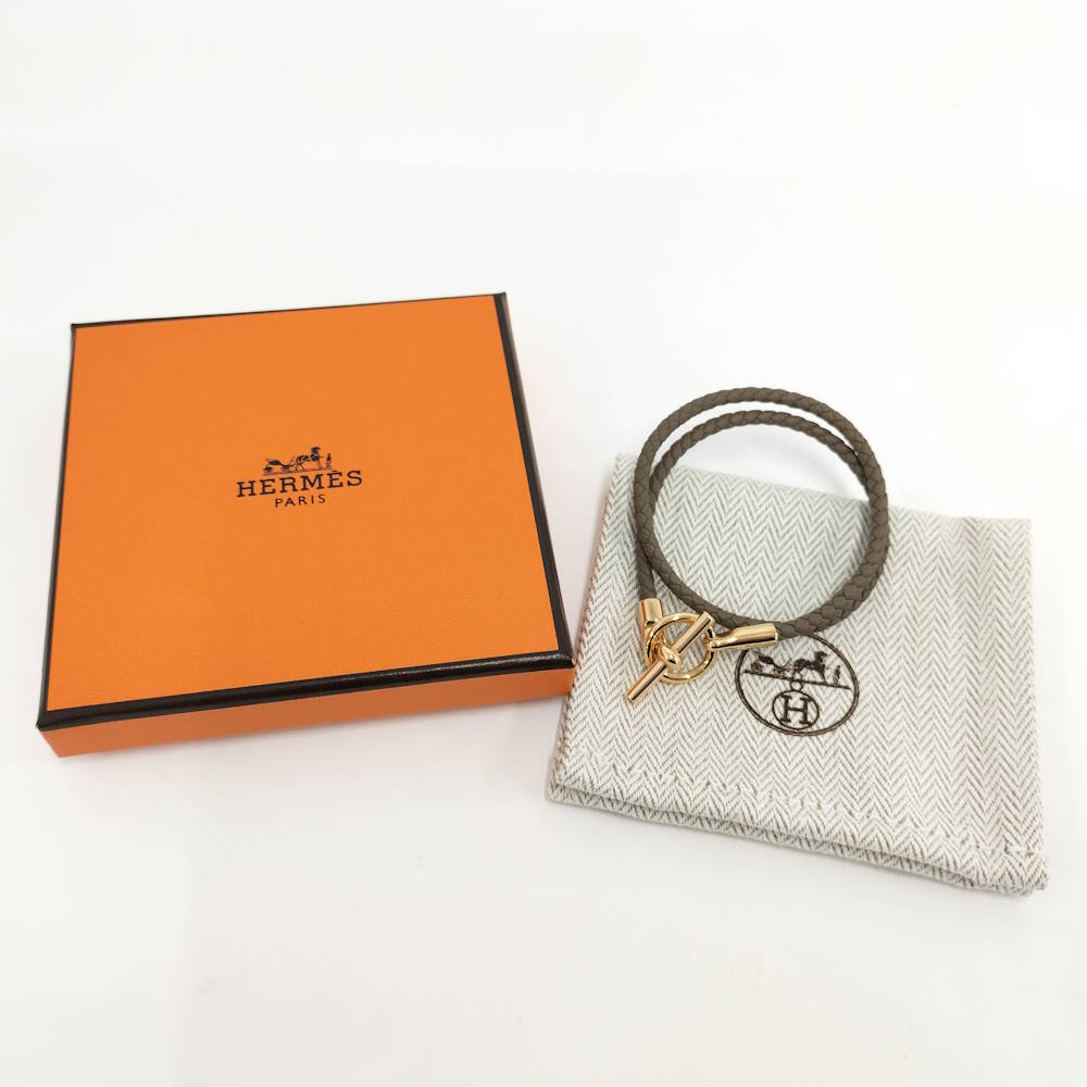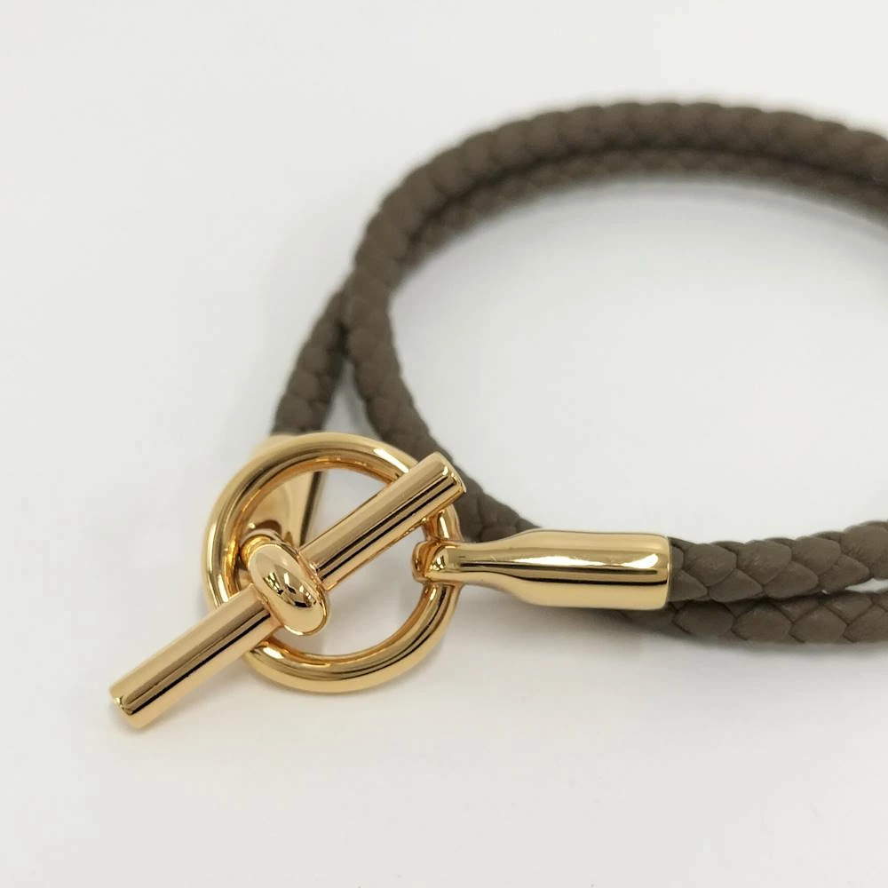 HERMES Double Tour Bracelet in Grennan Gold and Leather