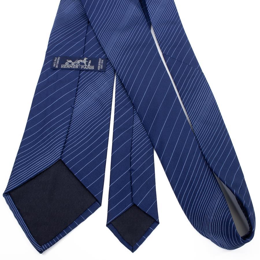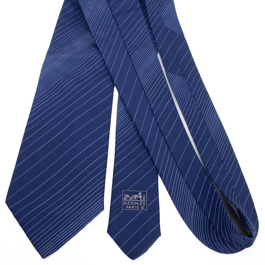 こちらは、知的な青のハーモニーが美しい、エルメスのネクタイでございます。