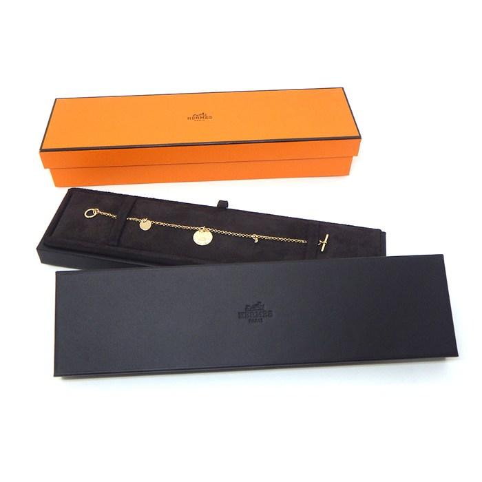 ■商品名HERMES ブレスレット エクスリブリス PM H120441B 00ST 3モチーフ トグルクラスプ 1ポイント ダイヤモンド 0.04ct K18PG 【中古】