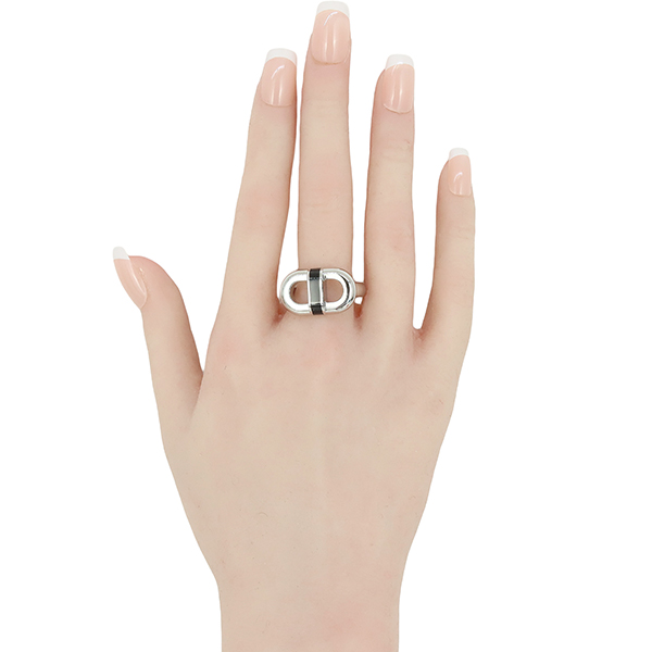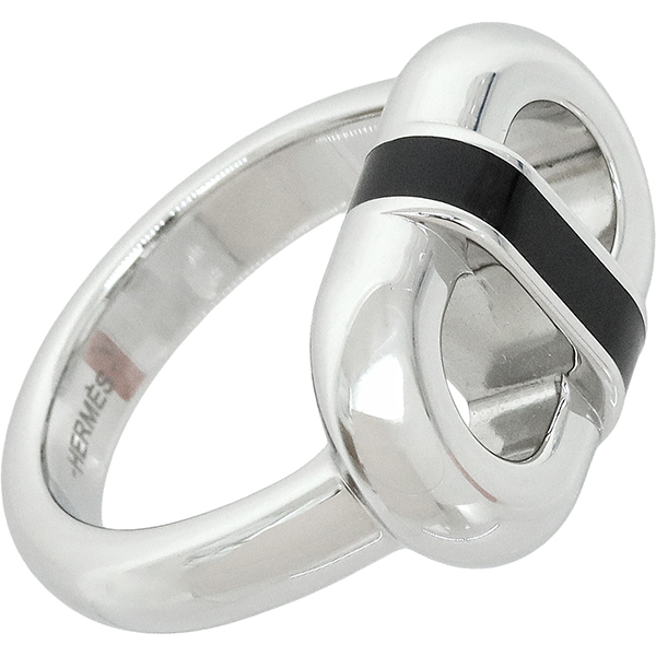 【ブランド】HERMES エルメス------------------------【商品名】リング マイヨン------------------------【ライン】MAILLON RING------------------------【型 番】H100043FJ0352------------------------【製造国】フランス------------------------【カラー】・ノワールブラック × シルバー------------------------【素 材】ラッカーメタルステンレススティール------------------------【サイズ】表記サイズ:52日本サイズ:約12号実寸サイズ:約15.5号リング幅:約0.4cmモチーフ:約 横1.4cm × 縦2.2cm------------------------【重 量】約10g------------------------【付属品】純正箱 / 保存袋------------------------【参考定価】80,300円