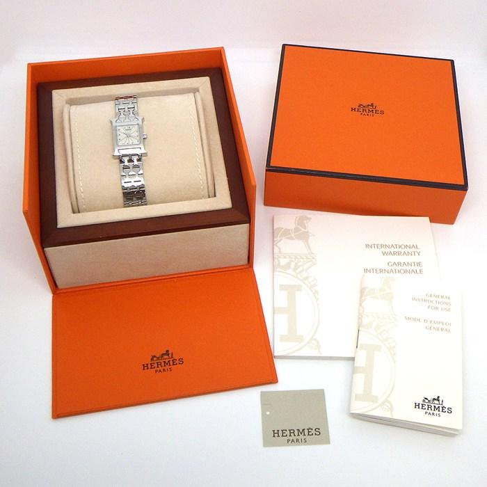HERMES 腕時計 Hウォッチ HH1.110 スクエア ギョーシェ アイボリー文字盤 SS クオーツアナログ 【中古】