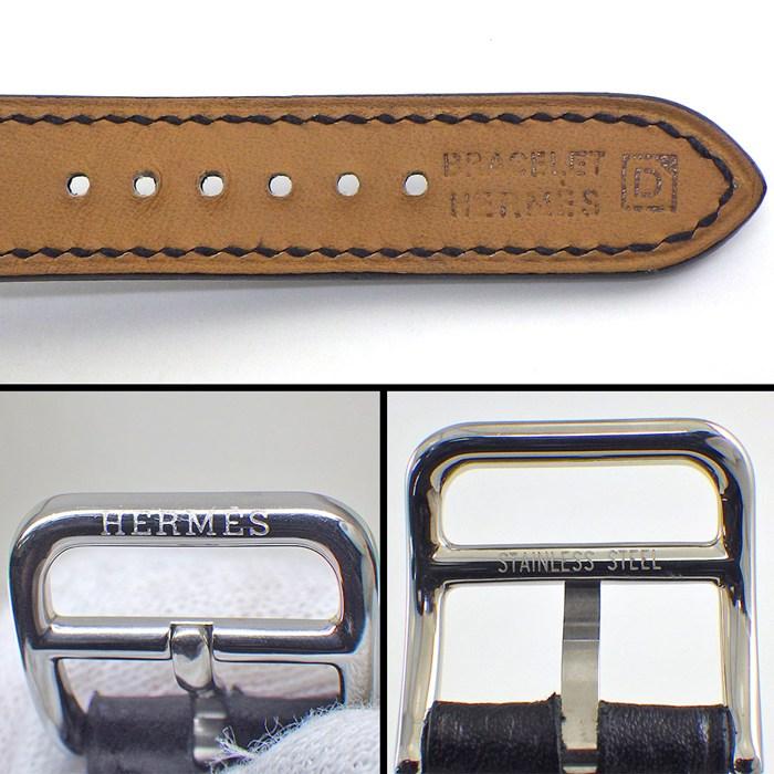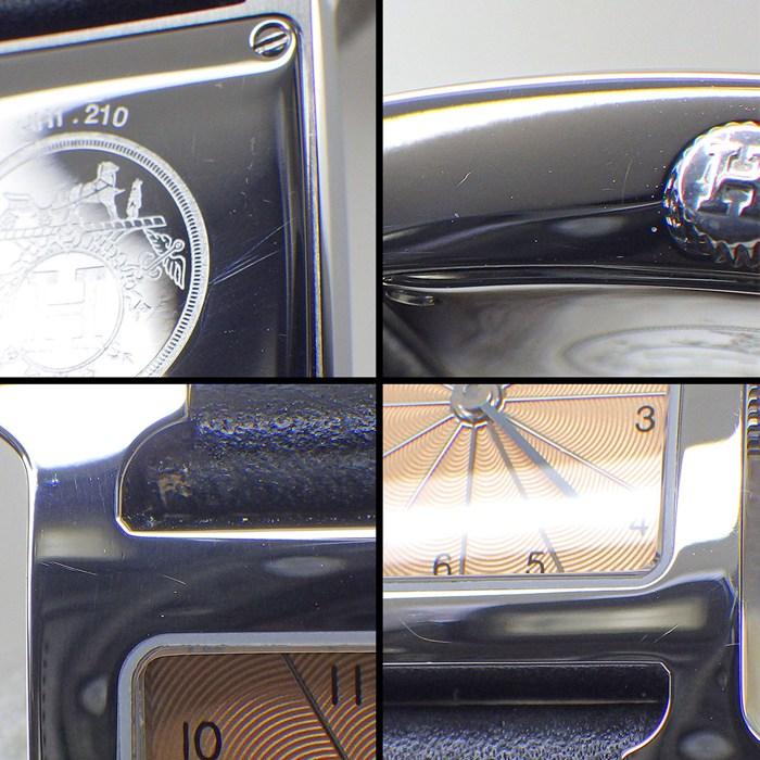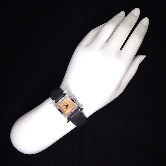 ■商品名HERMES 腕時計 Hウォッチ HH1.210 スクエア コーラル ピンク ギョーシェ文字盤 SS ブラック ヴォー・エプソン レザーベルト クオーツアナログ 【箱・保付き】 【中古】