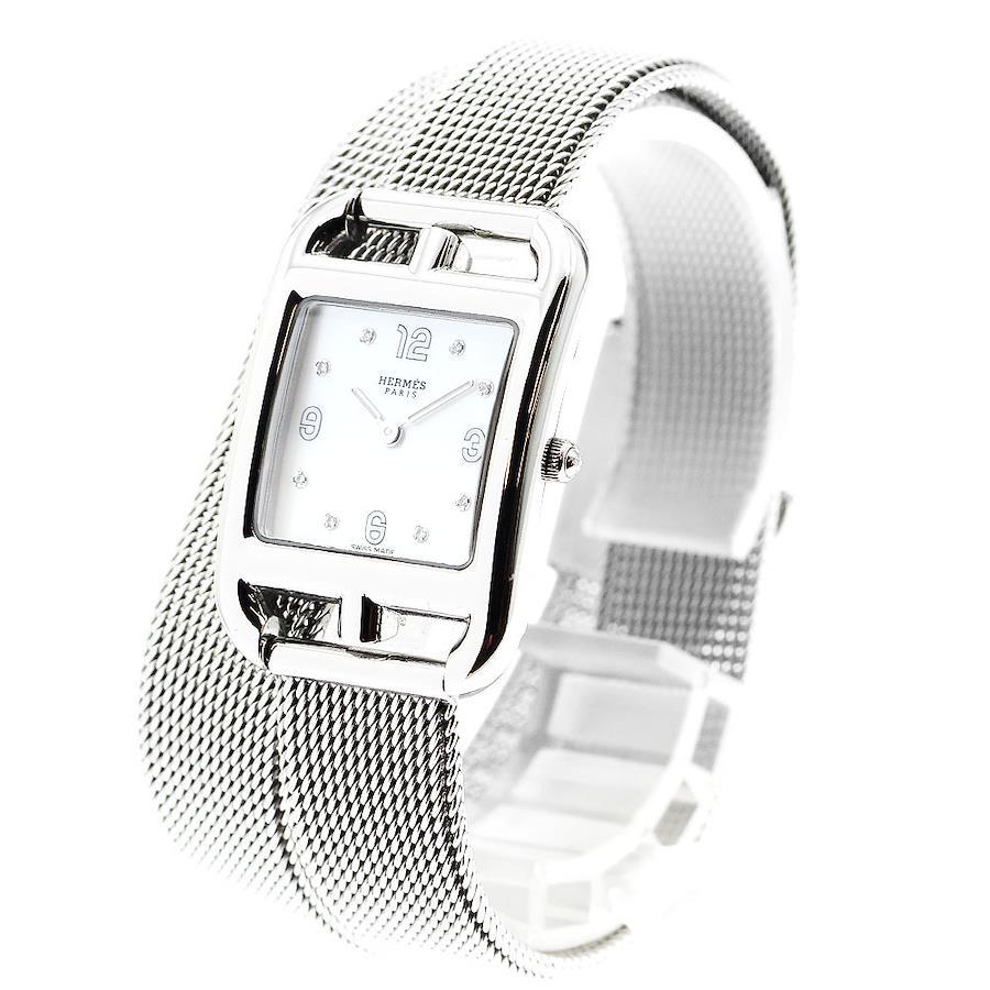 Brand: Hermes/HERMESModel: Cape CodGender: LadiesMaterial: SS x SSDial: White shellMovement: QuartzRef. No. CC1.210aSerial No. 3394***Accessories: None (main unit only)Case size: 23mmBelt size: 16.5cmLug width: 14mmOverhaul history: Not performed by our company.: Belt size refers to the total wrist size including the case.Condition rank: Main unit rank AB+Belt rank ABProduct condition: Glass in good conditionCase: Slight scratchesBezel: Slight scratchesBelt/bracelet: Slight scratchesHands in good conditionDial in good conditionBuckle: Slight scratches
