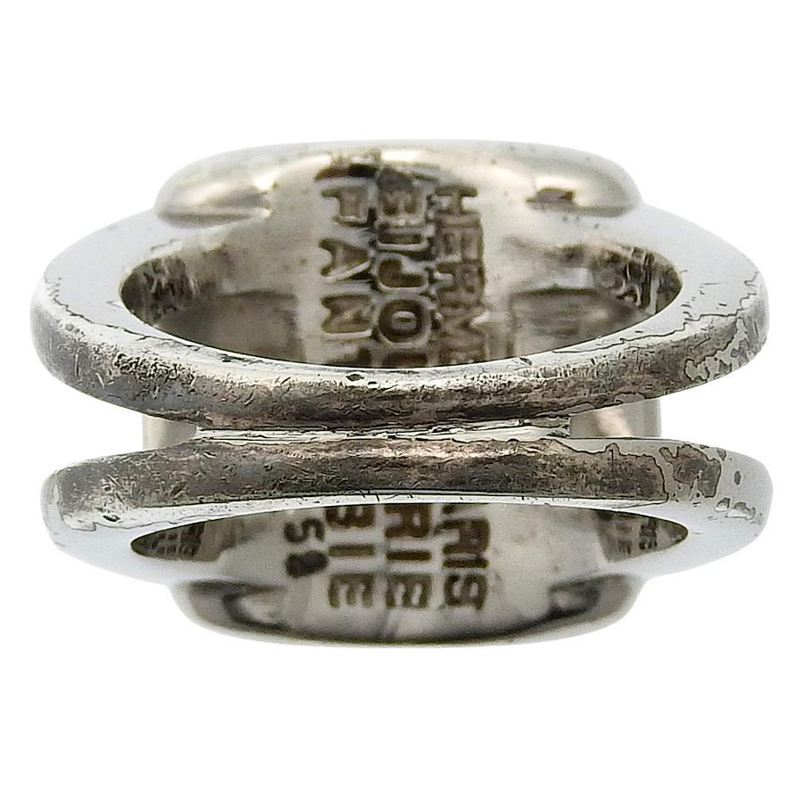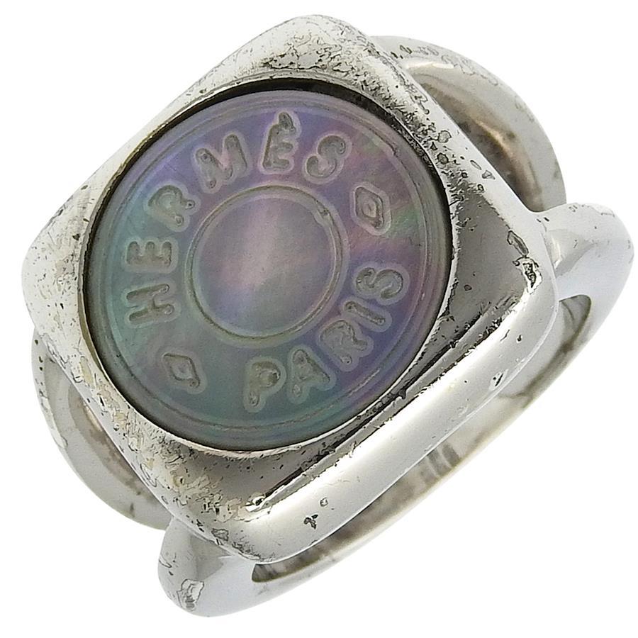 HERMES Corozo Serie BIJOUTERIE FANTAISIE Ring, Metal and Shell, Size 11, Silver, Approx. 10.4g, Pre-owned, Women's