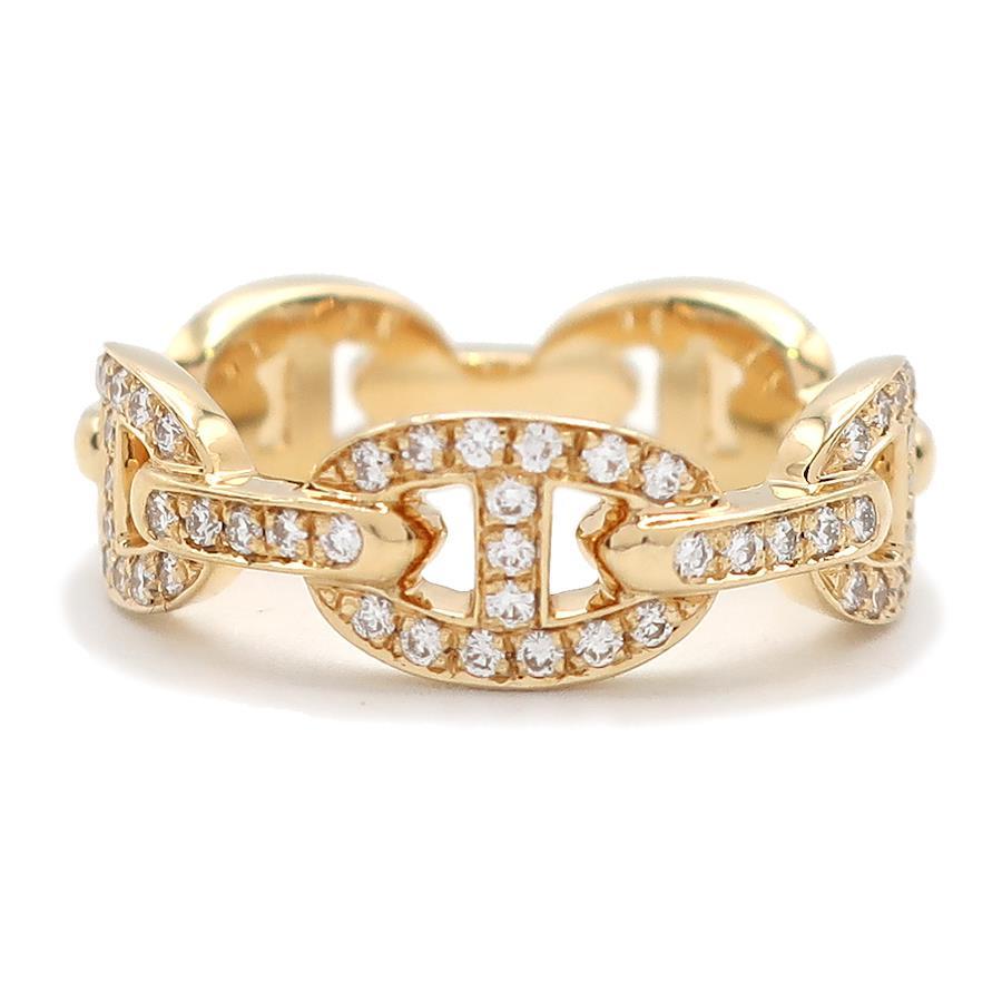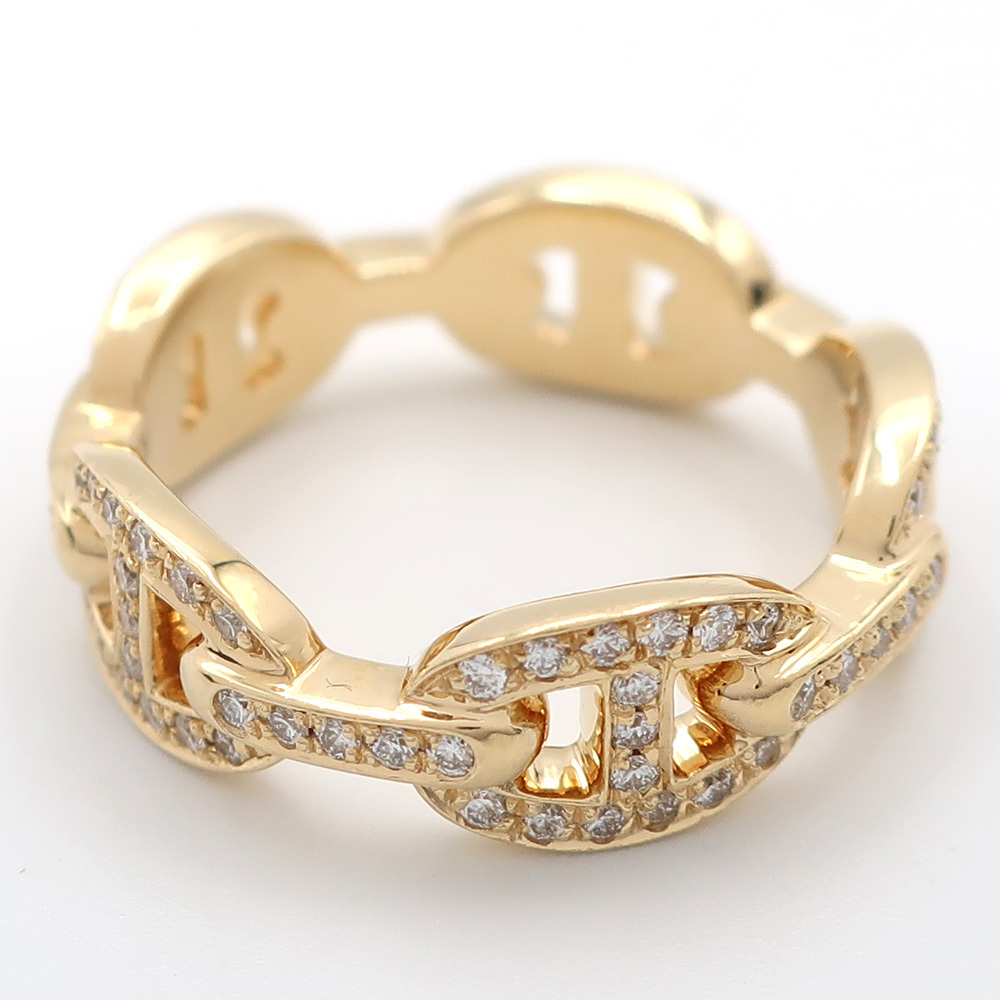 HERMES Chaine d'Ancre Ring, Yellow Gold 750K18YG, #54, 0.54ct, 100 Diamonds