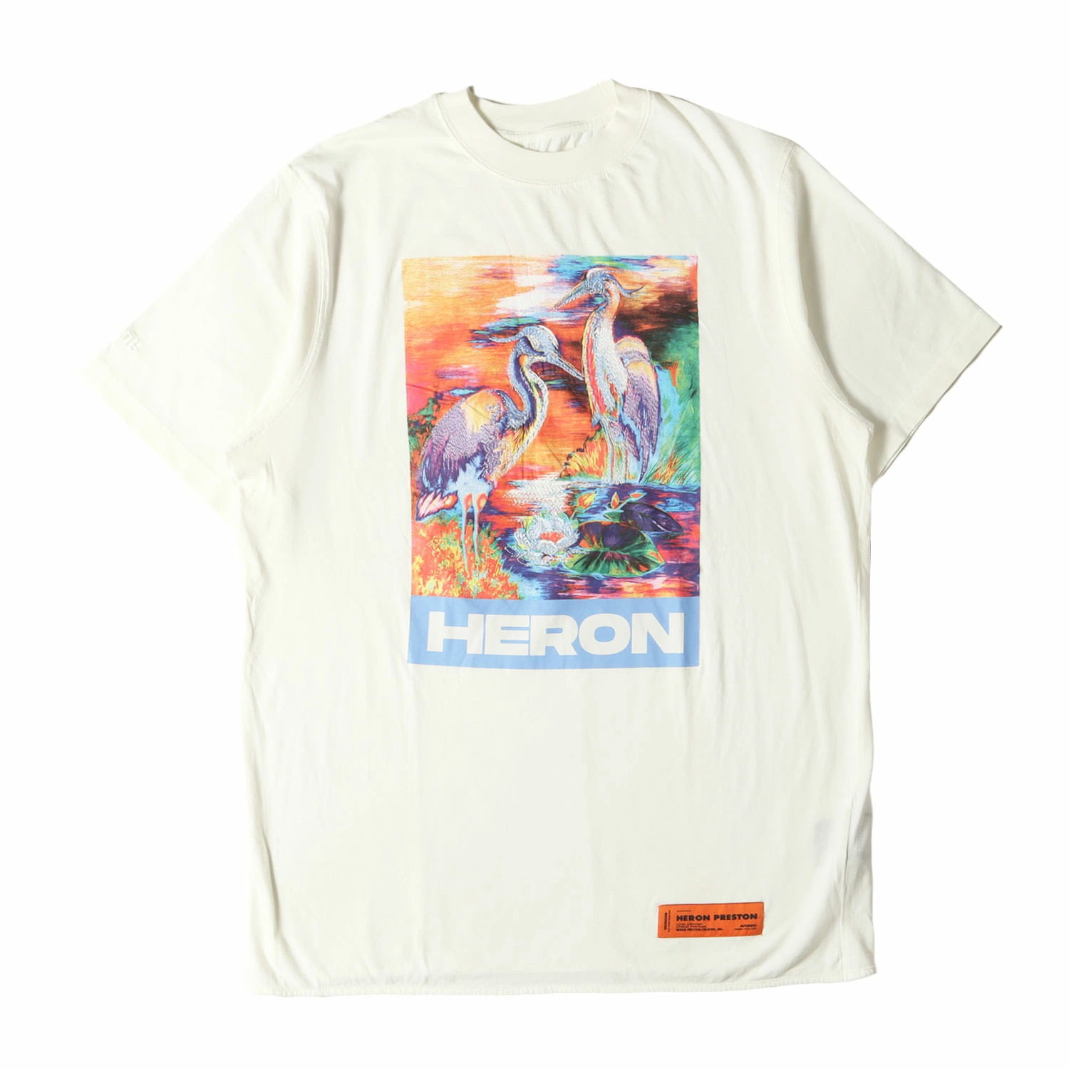 HERON PRESTON Men's Short Sleeve Crew Neck T-Shirt, Size Small, 20SS Bird Graphic T-Shirt, White, Cut and Sew Top, K4617