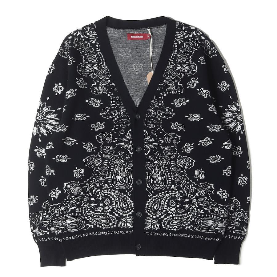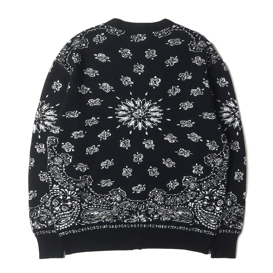 | 商品説明 | ・柔らかく肌触り良いコットンニット生地 ・ペイズリーバンダナ柄ジャガード ・フロント5つボタン ・Vネック ・襟、袖口、裾口リブ編み ・著名人着用モデル |