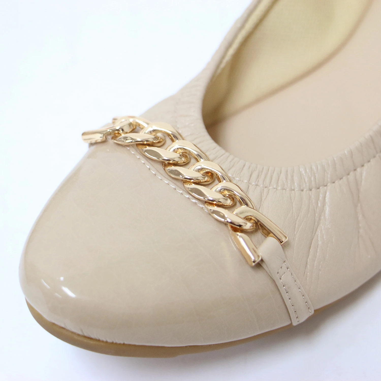 | 商品説明 | ・履き口ギャザー仕様 ・フロントチェーン金具 ・つま先のエナメル切替デザイン |