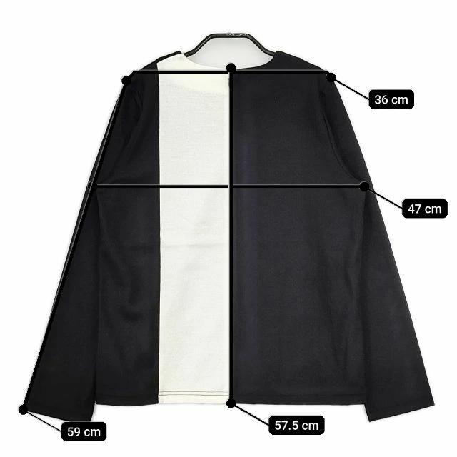 | 実寸サイズ | 肩幅:約36cm 着丈:約57.5cm 身幅:約47cm 袖丈:約59cm 備考 ホワイト部分のみやや透け感あり ※採寸画像がある商品はハンガーに吊るした状態での計測のため、平置きでの採寸とは差が生じる場合がございます。平置きでの実寸サイズをご希望の場合は、ご購入前に必ずご質問ください。 ※記載以外のサイズが合わないことを理由とした返品はできませんので、 記載部分以外で実寸サイズの気になる箇所があれば必ず購入前にご質問ください。 |