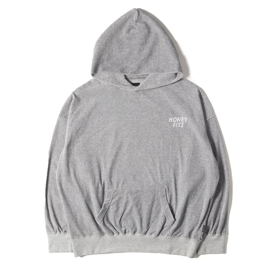 - 胸にブランドロゴ刺繍をあしらったベロア素材のプルオーバーパーカーになります。