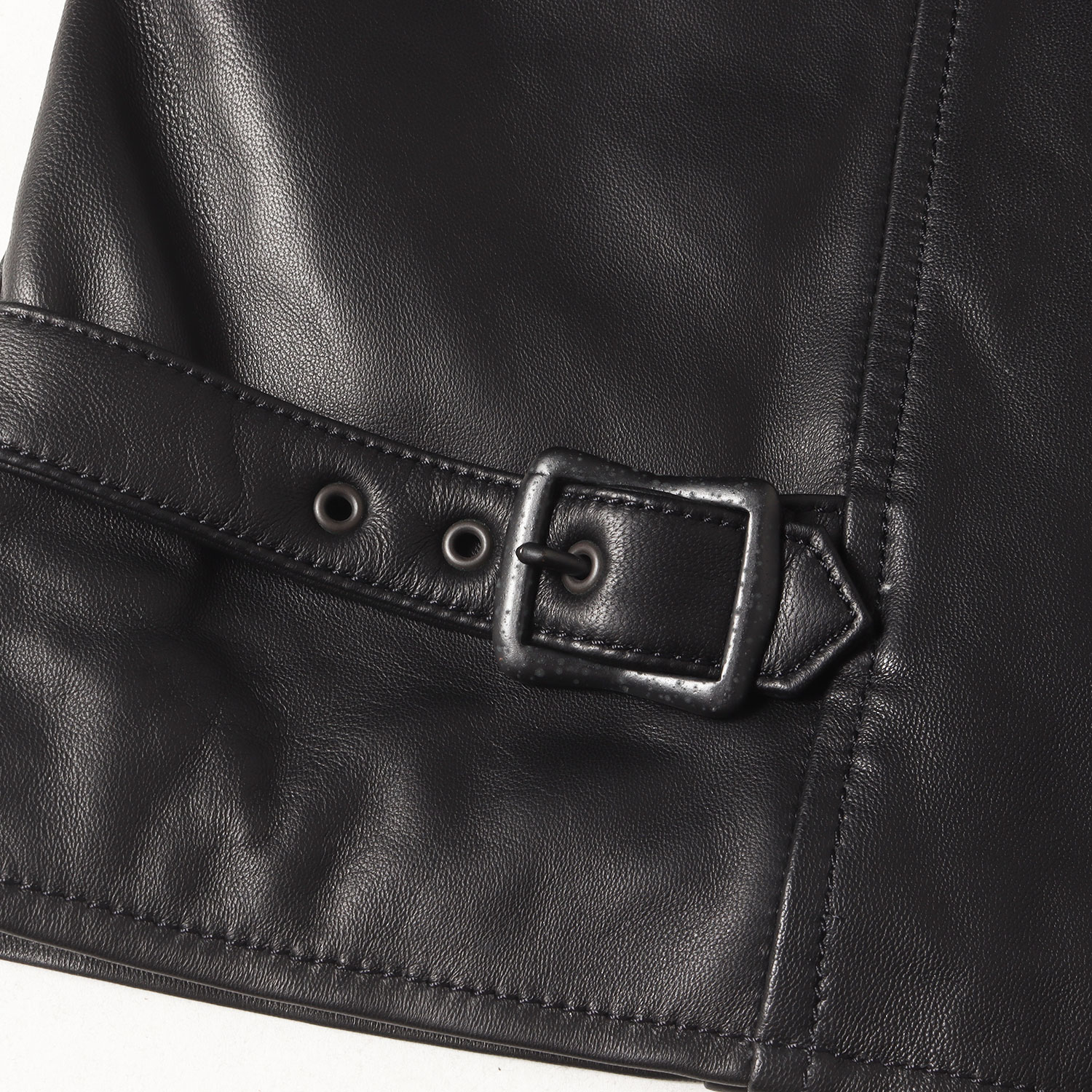 | 商品説明 | ・特有の靭やかさのある柔らかなラムレザー生地 ・フロントジップアップ仕様 ・ジップ付きウエストポケット ・背面にウエストベルト |