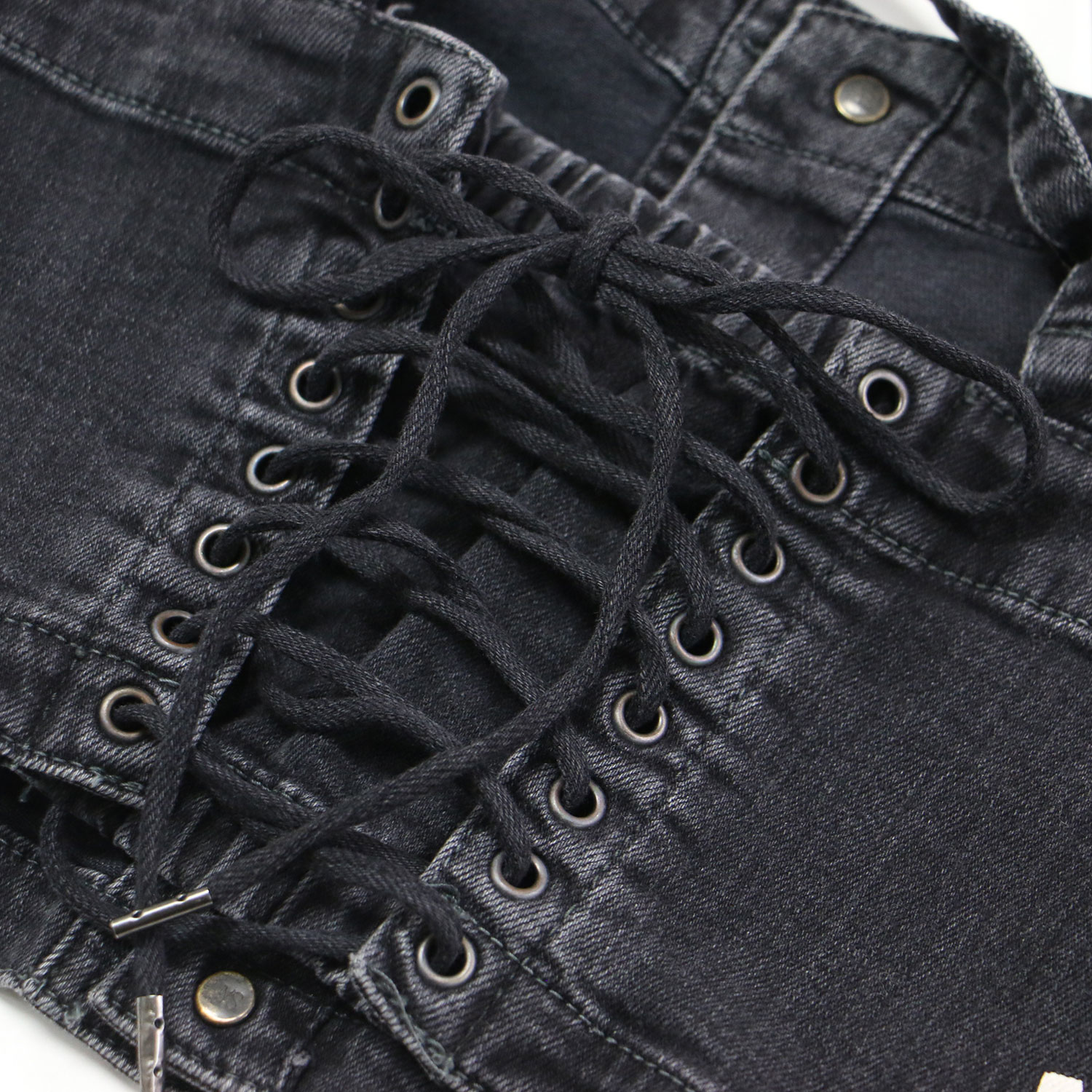 | 商品説明 | ・肩紐調整可能 ・バックレースアップデザイン ・9ozストレッチデニム ・バックゴム入り |