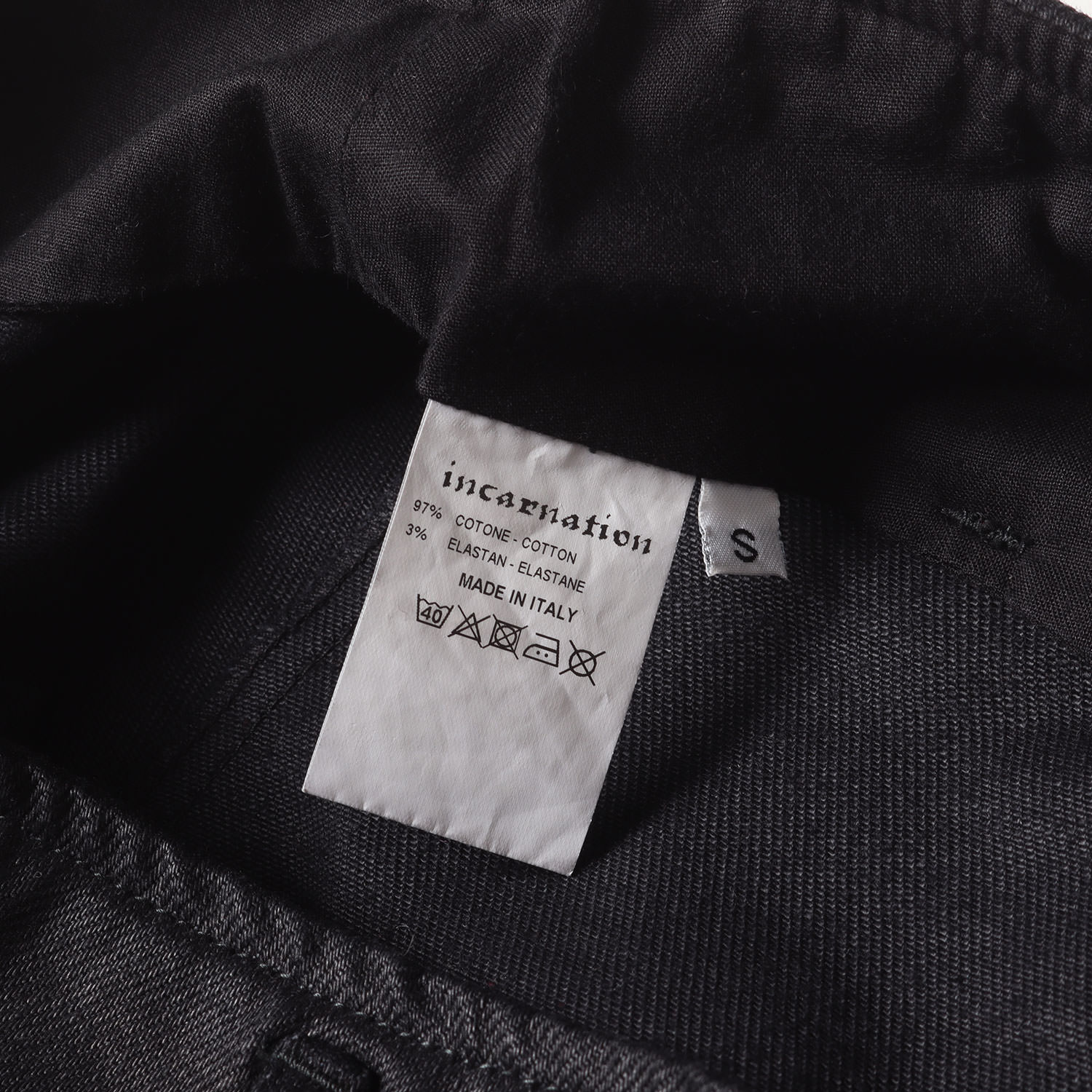 | 商品説明 | コーティング加工が施されたストレッチデニム生地を使用し、チャコールカラーのステッチデザインがあしらわれたサルエルパンツです。 |