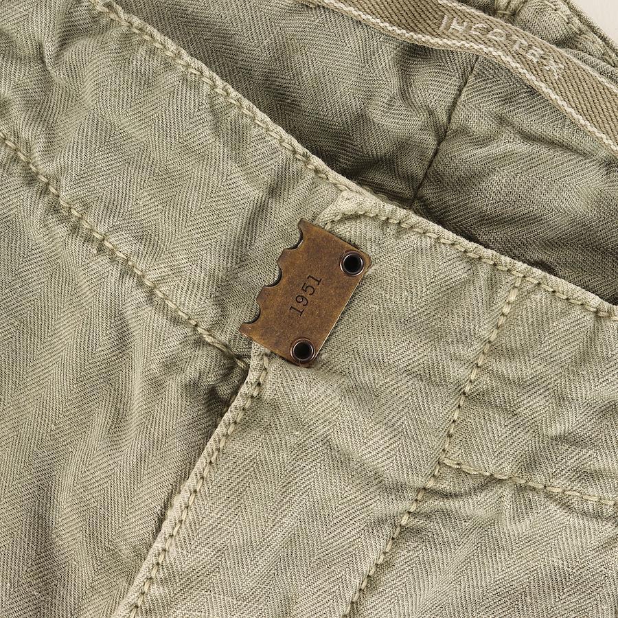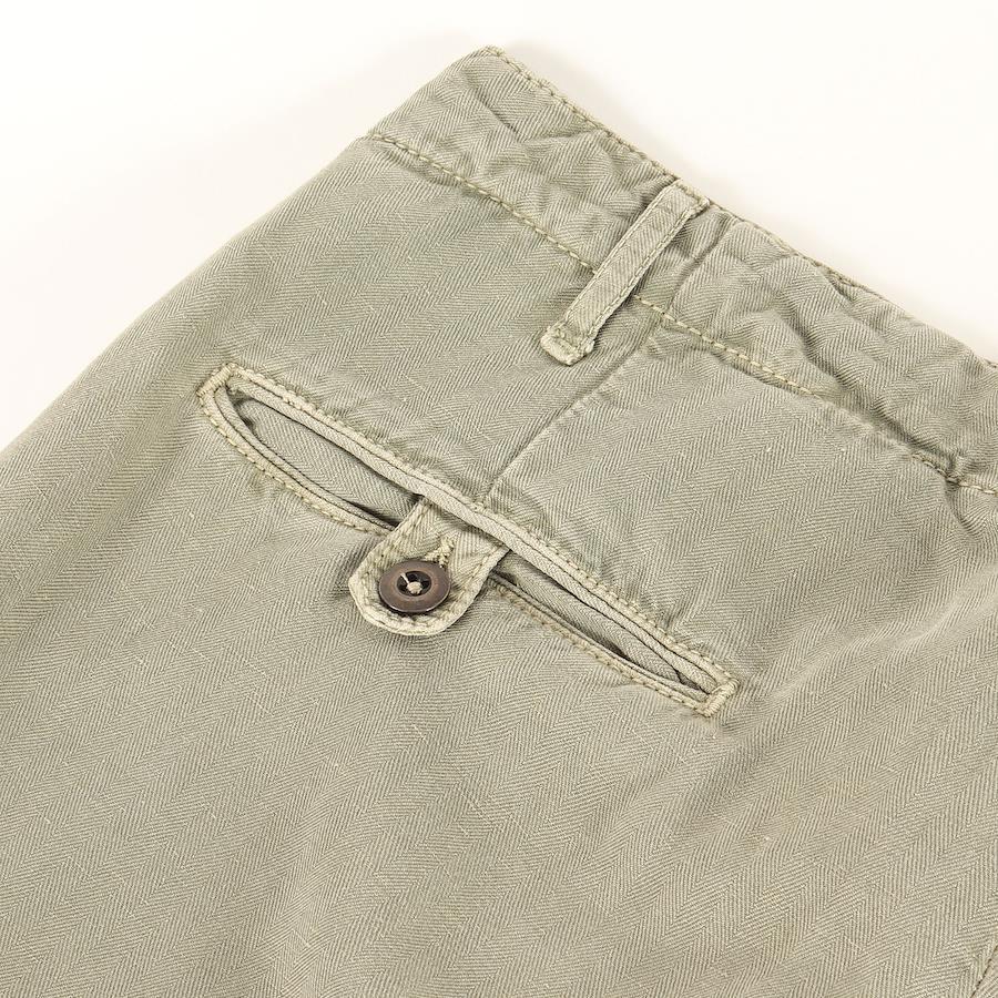 | 商品説明 | ・リネン/コットン混紡ヘリンボーンツイル地 ・オーバーダイ加工 ・サイドラインテープ刺繍 ・すっきりとしたテーパードシルエット ・左バックポケット上ブランドロゴプレート ・フロントメタル製ボタンフライ仕様 |