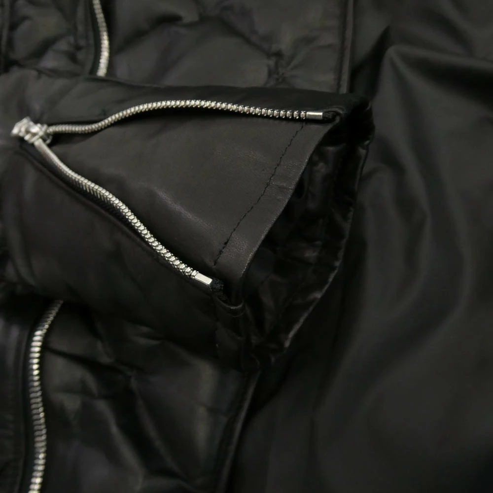 | 商品名 | 2031-16 MONOCHROME LUXURY STEER 0.6mm POLISH WHITE GOOSE DOWN BLOUSON キルティング レザー ダウン ジャケット ブルゾン |