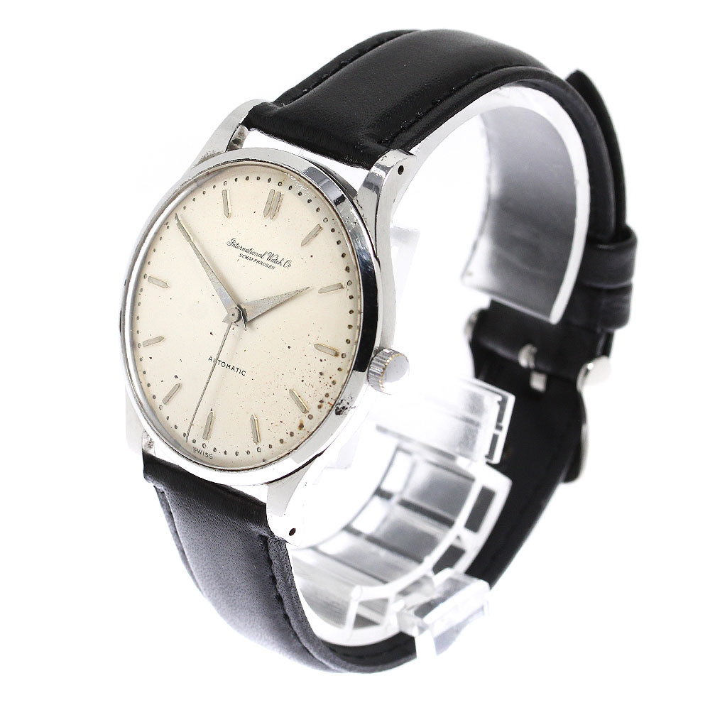 Brand: IWC/IWC SCHAFFHAUSENGender: MenMaterial: SS x LeatherDial: SilverMovement: AutomaticAccessories: None (main unit only)Case size: 34mmBelt size: 19cmLug width: 18mmDaily difference: -4 seconds/day *Reference value: Belt size refers to the total wrist size including the case.Condition rankMain unit rank: BCBelt rank: N *Non-genuine productProduct conditionGlass: Light scratches, dust, small impact scratches (inside, in places)Case: Some light scratches, small dentsBezel: Light scratches, dents (4 o'clock position)Belt/Bracelet: UnusedHands: Large damage, stains (overall)Dial: Light damage, stains, discoloration, dust, fibers (overall)Others: Crown: Non-genuine productNotes: This product is listed at a low price as a defective product because the hand winding sometimes slips. We do not accept returns, exchanges, free repairs, etc., so please bid with this in mind.