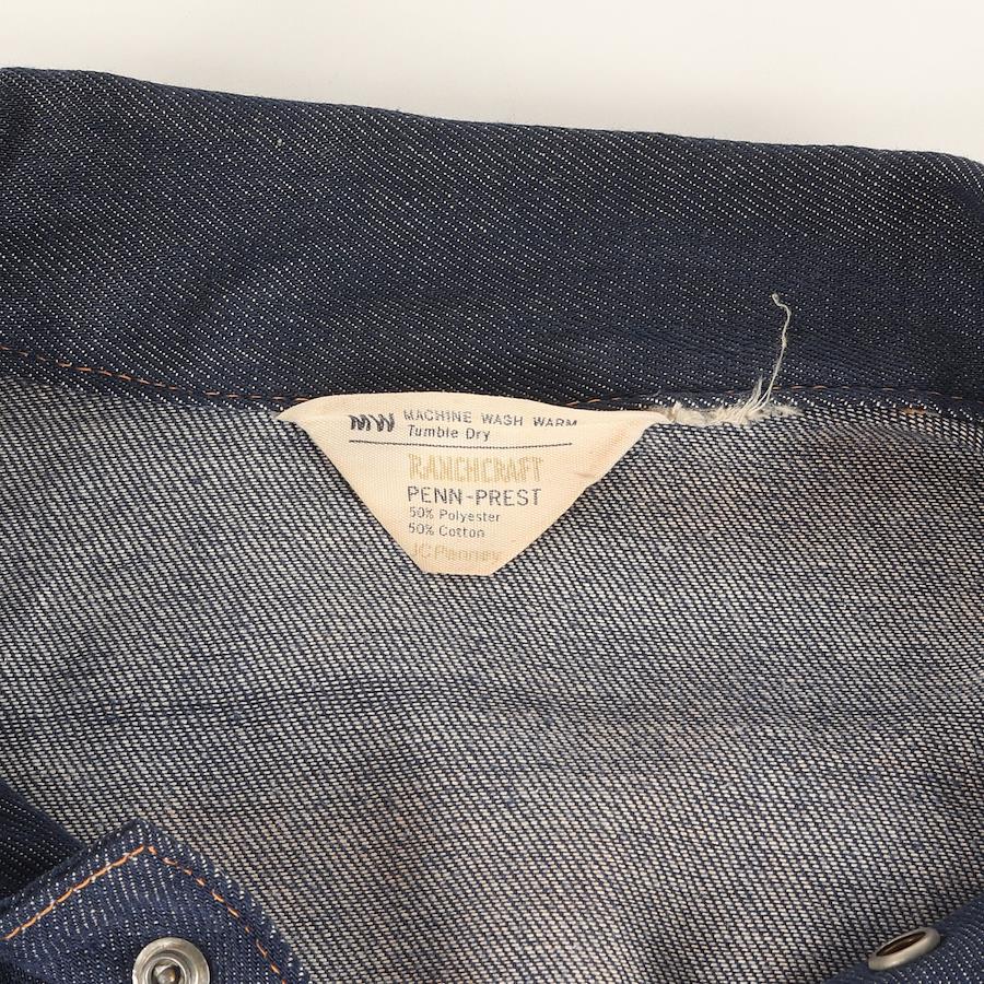 | 商品説明 | ・濃紺カラー ・”J.C.Penney”のストラブランド“RANCH CRAFT” ・コットン/ポリエステル混紡のバットダイデニムジャケット ・4つポケット ・スナップボタン |