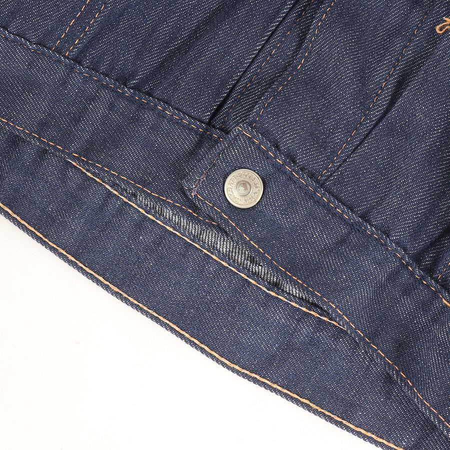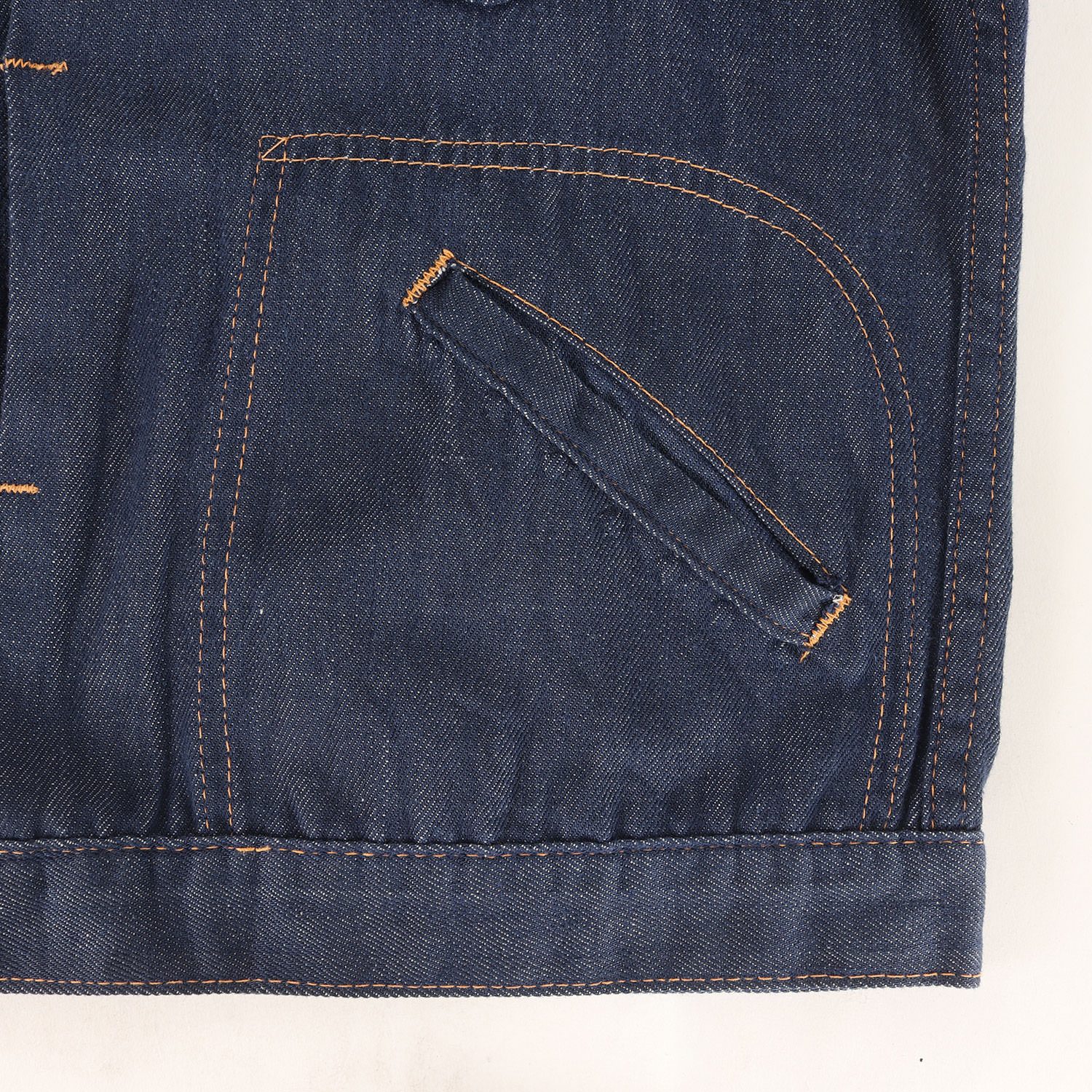 | 状態 | ヴィンテージ ・使用感は少なく濃紺ですが、背面にスタッズの外し跡がございます。 ・袖先にステッチが見られます。 |