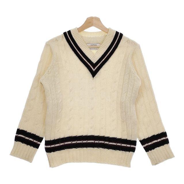 James Charlotte Cable Knit Wool Pullover Sweater, Made in England, 3307-H, Ivory, Women's, Pre-owned, Item Number: 4-1218T