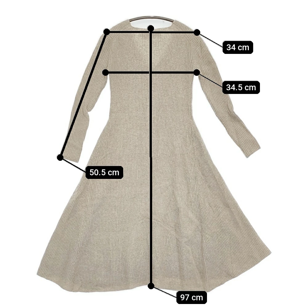 | アイテム | ワンピース KN-#723L サイズ38 Vネックウールニットフレアドレス |