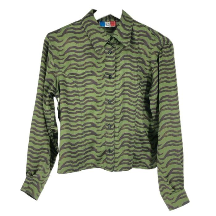 JC de CASTELBAJAC Castelbajac Long Sleeve Shirt, Green Satin, Pre-Owned, Women's