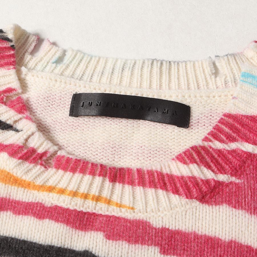 - ダメージ加工が施されたウールニット素材を使用し、全体にマルチカラーゼブラパターンがあしらわれたクルーネックニット"SUNNY DISTRESSED SWEATER"です。
