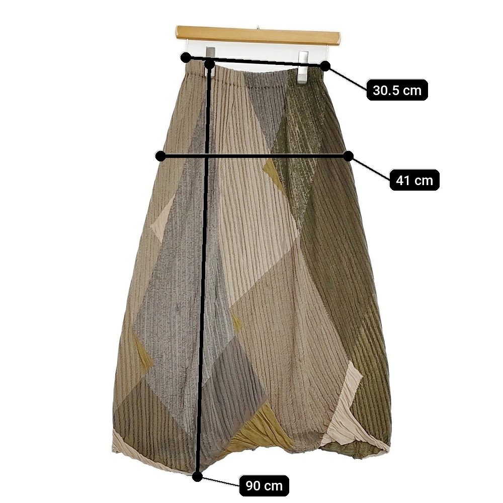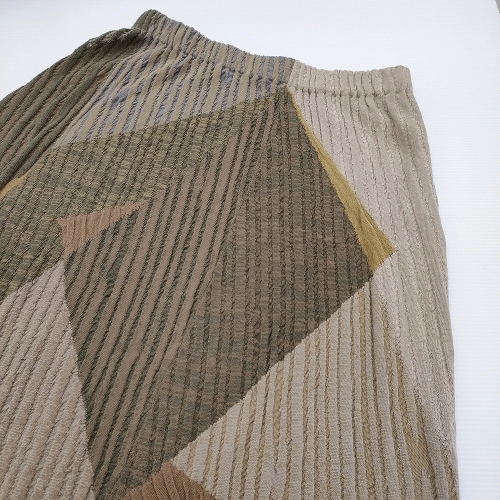 JURGEN LEHL Link Knit Wool-Cotton Long Skirt (J0193KS201), Beige/Khaki, Women's, Pre-owned, Model 5-1115T