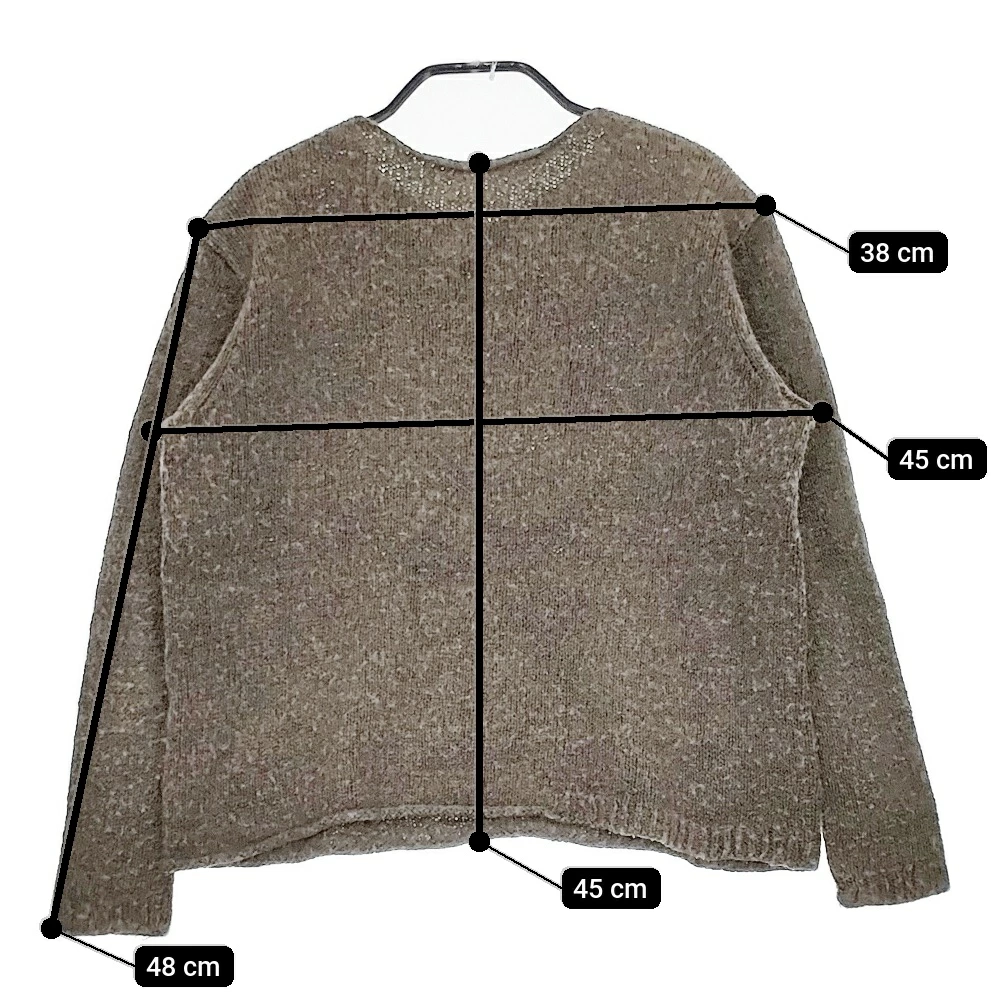 | 実寸サイズ | 肩幅:約38cm 着丈:約45cm 身幅:約45cm 袖丈:約48cm ※記載以外のサイズが合わないことを理由とした返品はできませんので、 記載部分以外で実寸サイズの気になる箇所があれば必ず購入前にご質問ください。 |