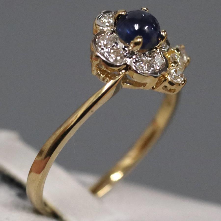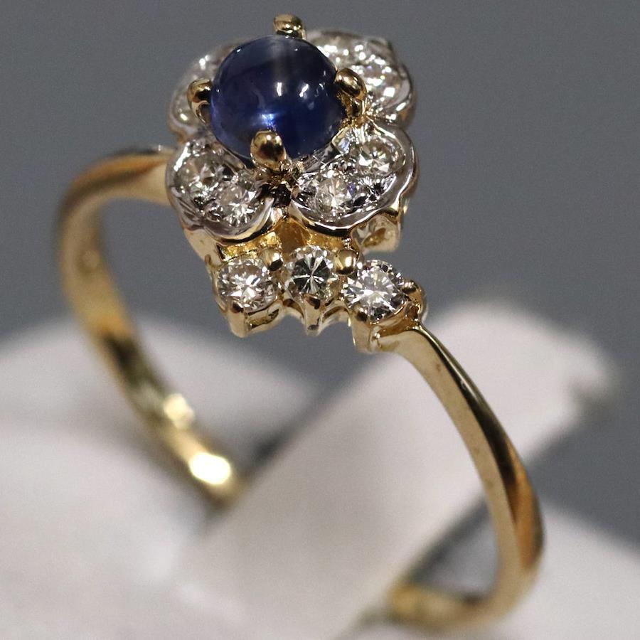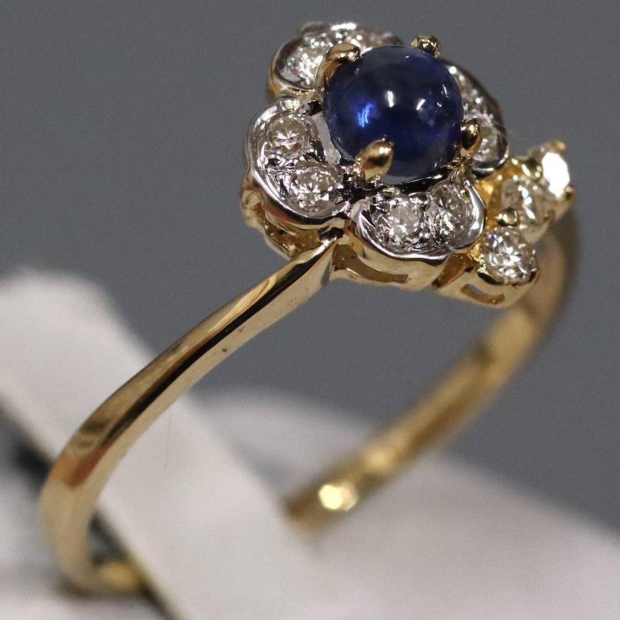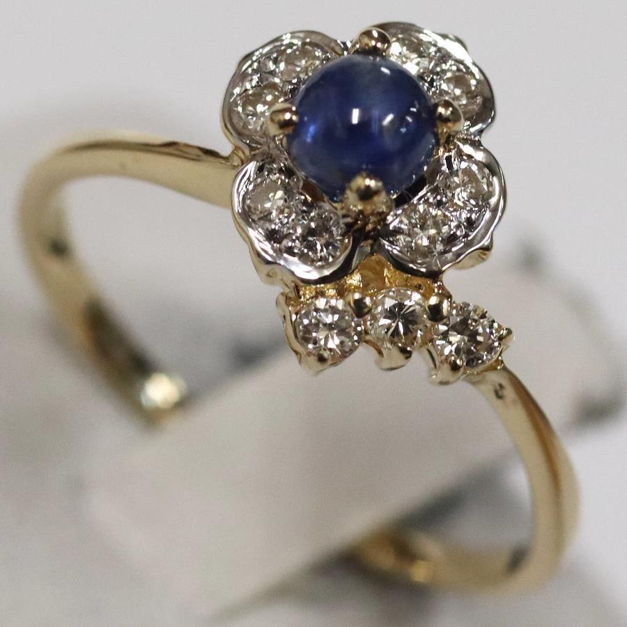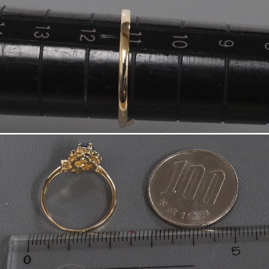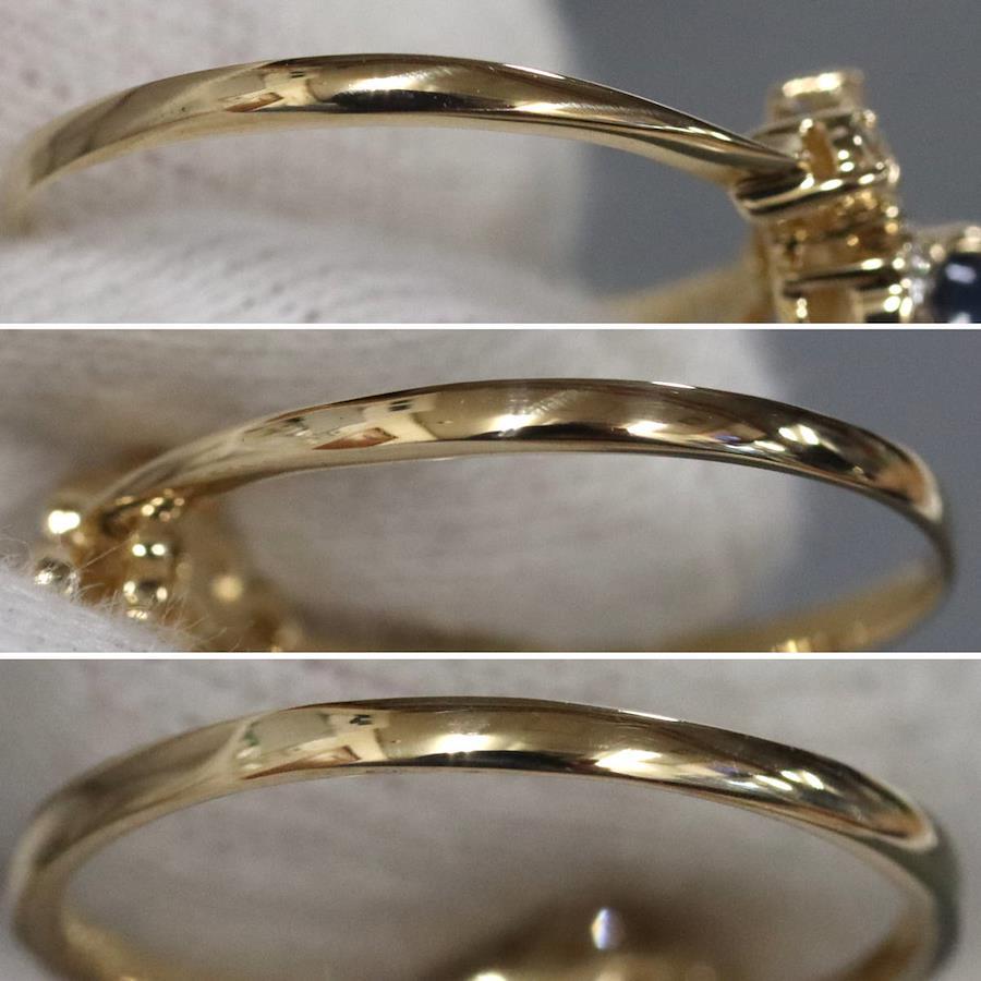 K18サファイアダイヤモンドリングの中古品です。サファイアはややインクルージョンがありますが、明度が低く肉眼では見えません。ダイヤモンドはわずかにインクルージョンがありますが、照りよく輝きます。リング底部の内側に薄っすらとサイズ直しの跡があります。地金にはわずかに小傷があります。+---+---+---+---+---+。{状態}A{素材}K18YG,サファイア,ダイヤモンド{サイズ}当店計測約#11{リング幅}約1-10mm。{その他}S0.45ct,D0.19ct,1.9g。{付属品}なし(サービス箱をお付けします){お問合せ商品番号}26013133+---+---+---+---+---+。
