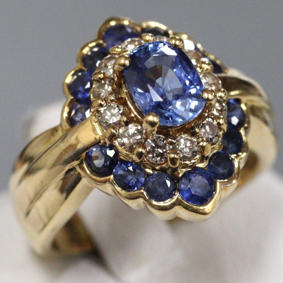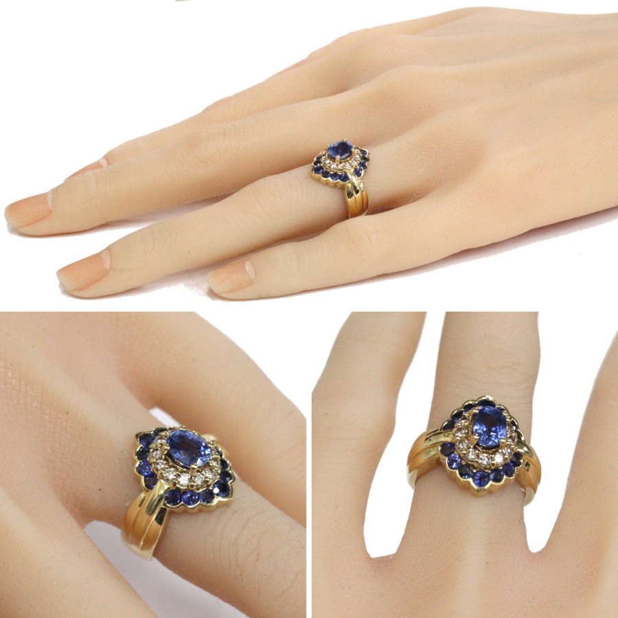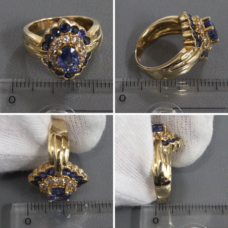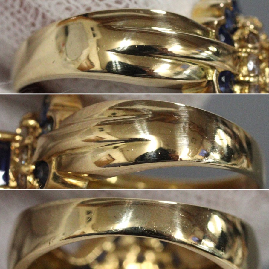 K18サファイアダイヤモンドリングの中古品です。中石のサファイアは彩度が中間で明度がやや高く、透明度が高いです。わずかにインクルージョンがあり、表面にわずかに傷があります。メレのサファイアは彩度が高く、ややインクルージョンがあります。ダイヤモンドはわずかにインクルージョンがありますが、照りがあります。地金には小傷があります。+---+---+---+---+---+。{状態}AB{素材}K18YG,サファイア,ダイヤモンド{サイズ}当店計測約#8{リング幅}約3-17mm。{その他}S1.17ct,S1.11ct,D0.38ct,7.9g。{付属品}なし(サービス箱をお付けします){お問合せ商品番号}26043019+---+---+---+---+---+。