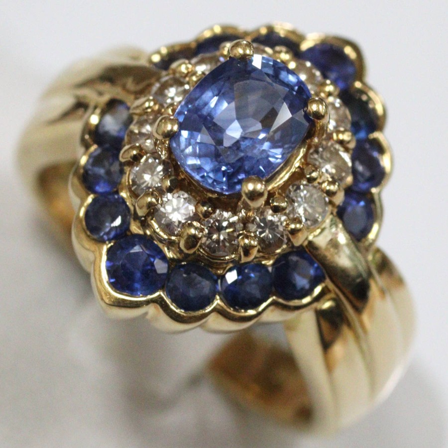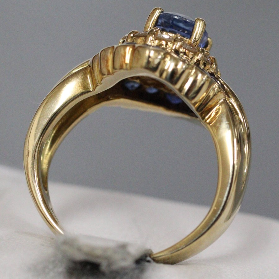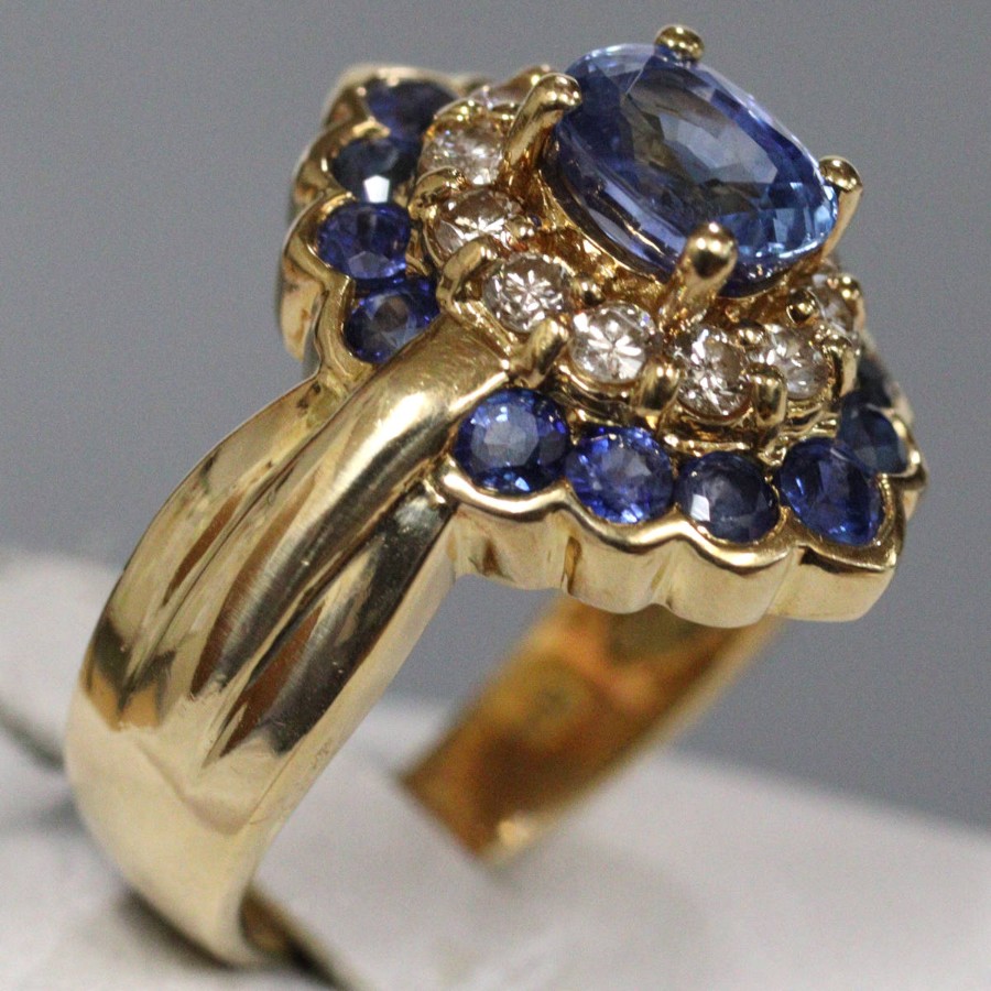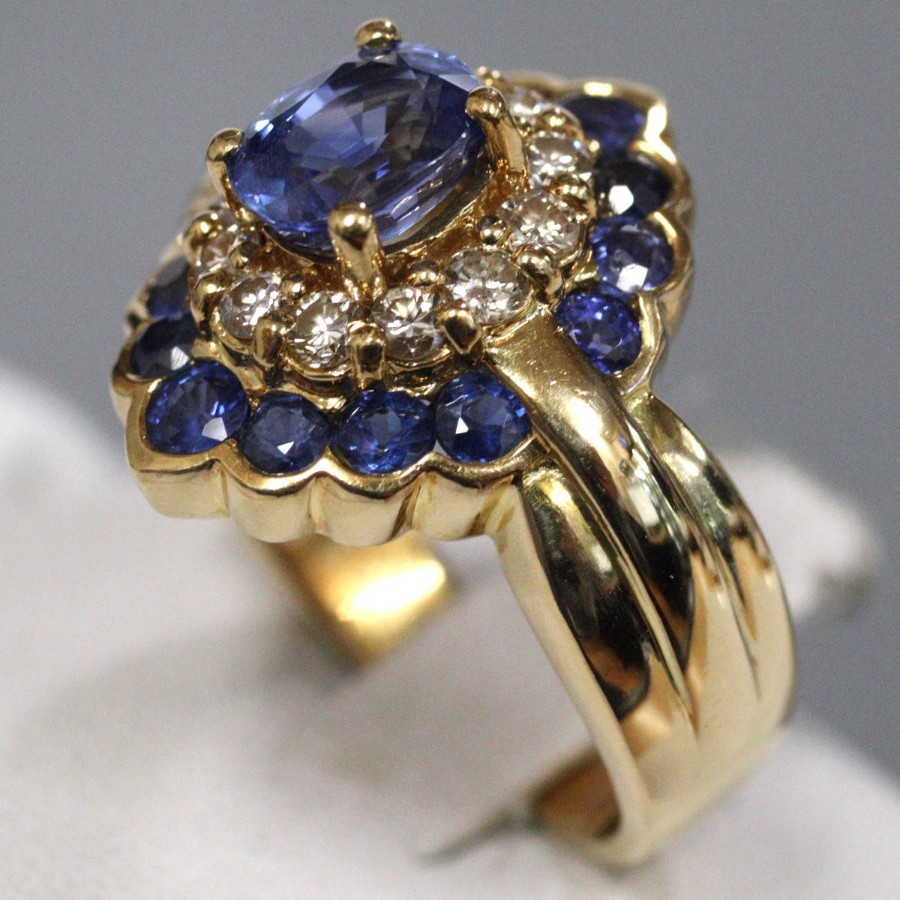 K18サファイアダイヤモンドリングの中古品です。中石のサファイアは彩度が中間で明度がやや高く、透明度が高いです。わずかにインクルージョンがあり、表面にわずかに傷があります。メレのサファイアは彩度が高く、ややインクルージョンがあります。ダイヤモンドはわずかにインクルージョンがありますが、照りがあります。地金には小傷があります。+---+---+---+---+---+。{状態}AB{素材}K18YG,サファイア,ダイヤモンド{サイズ}当店計測約#8{リング幅}約3-17mm。{その他}S1.17ct,S1.11ct,D0.38ct,7.9g。{付属品}なし(サービス箱をお付けします){お問合せ商品番号}26043019+---+---+---+---+---+。