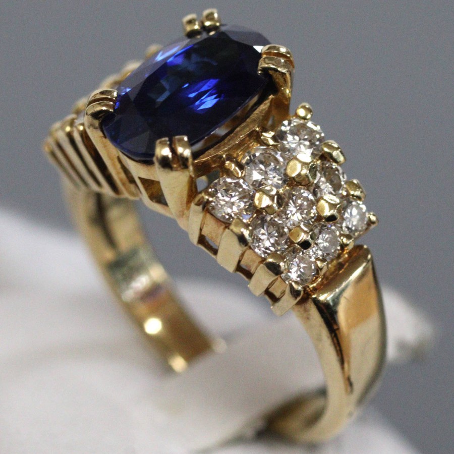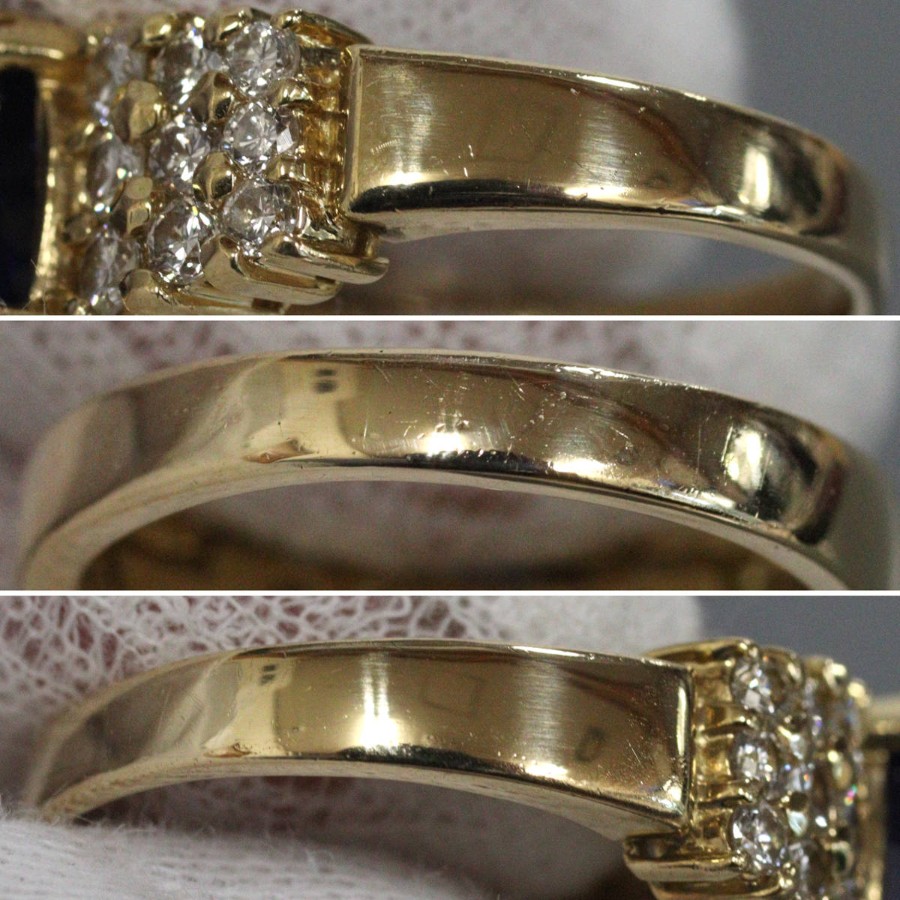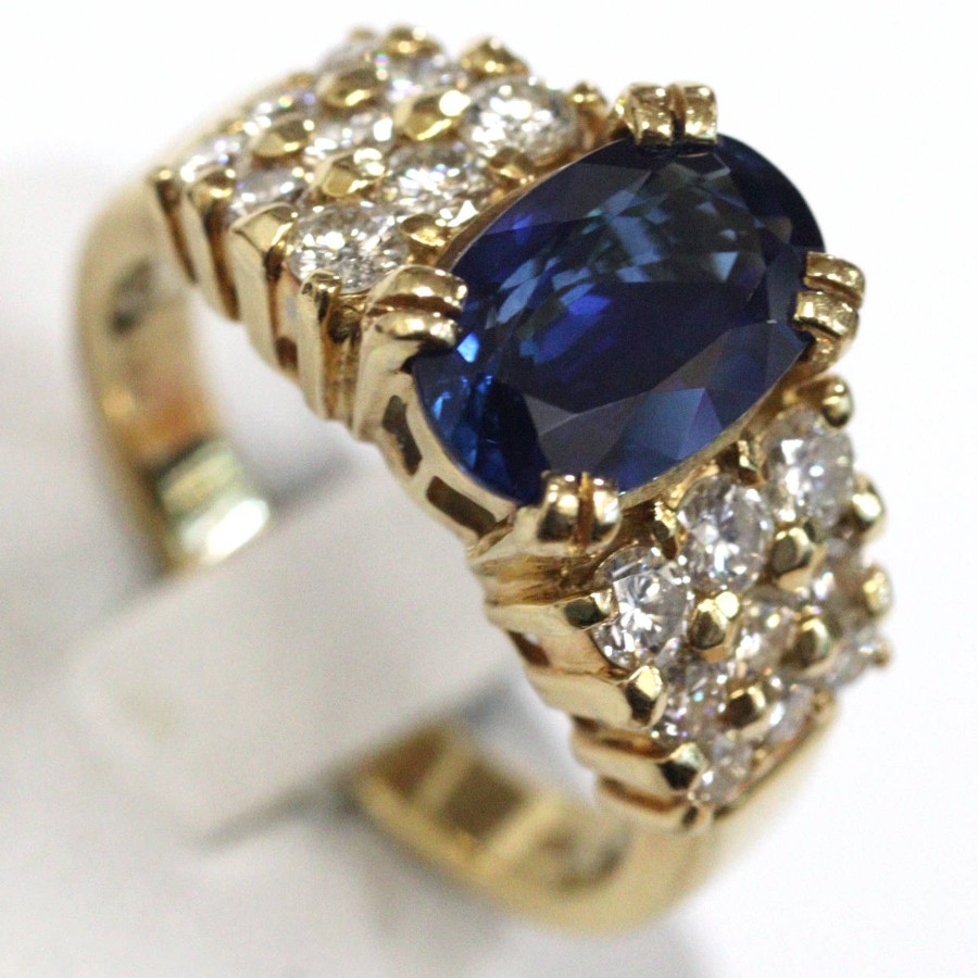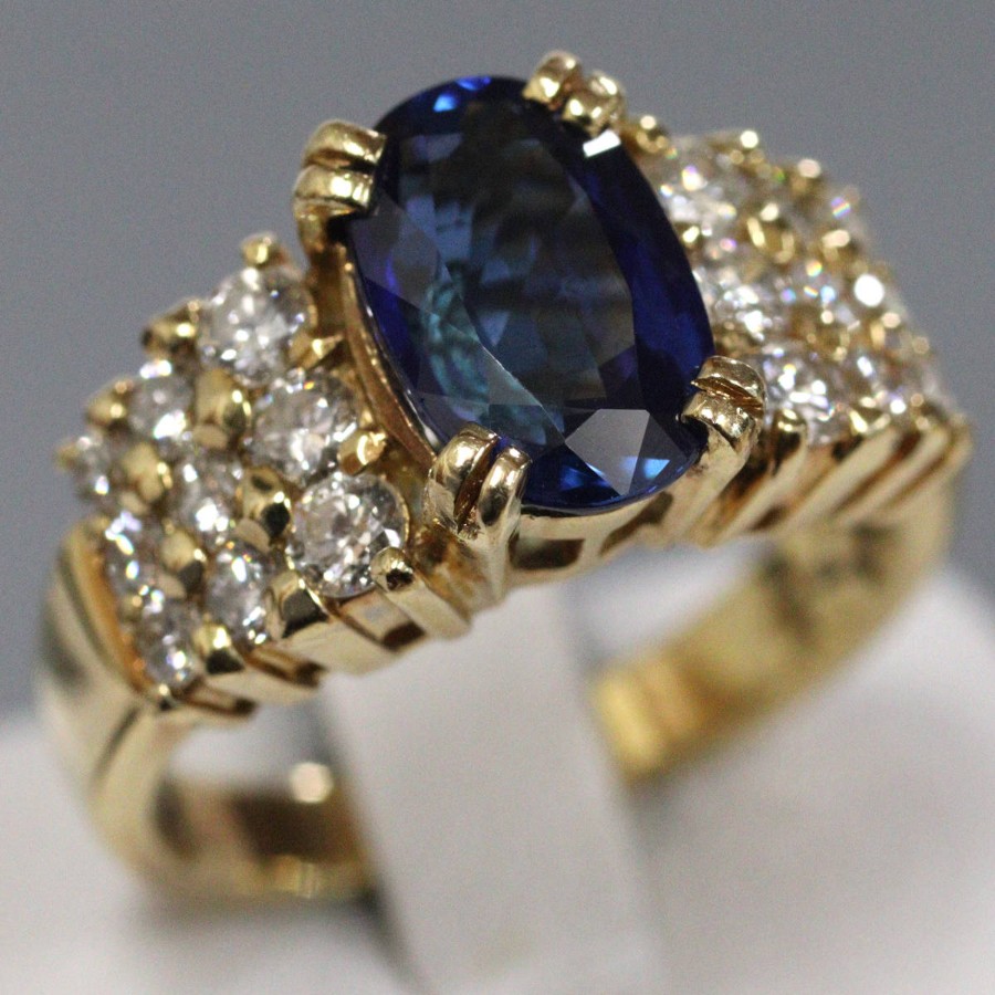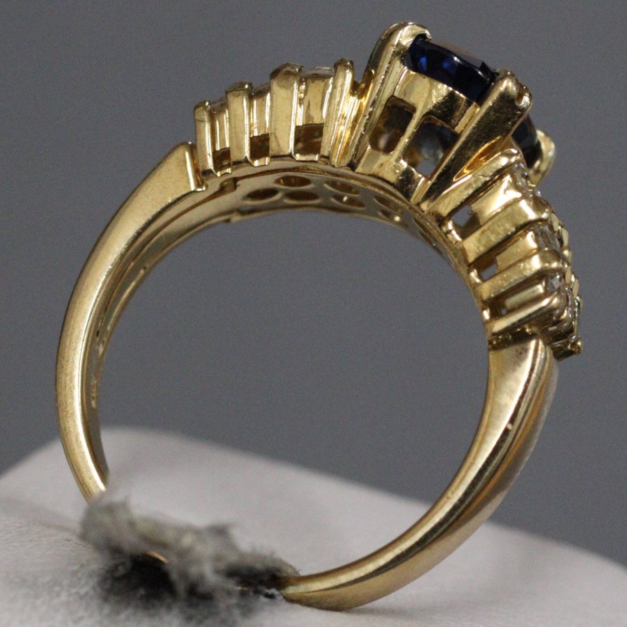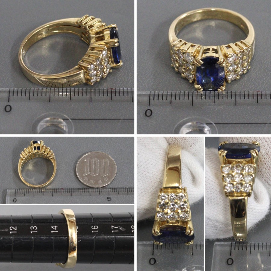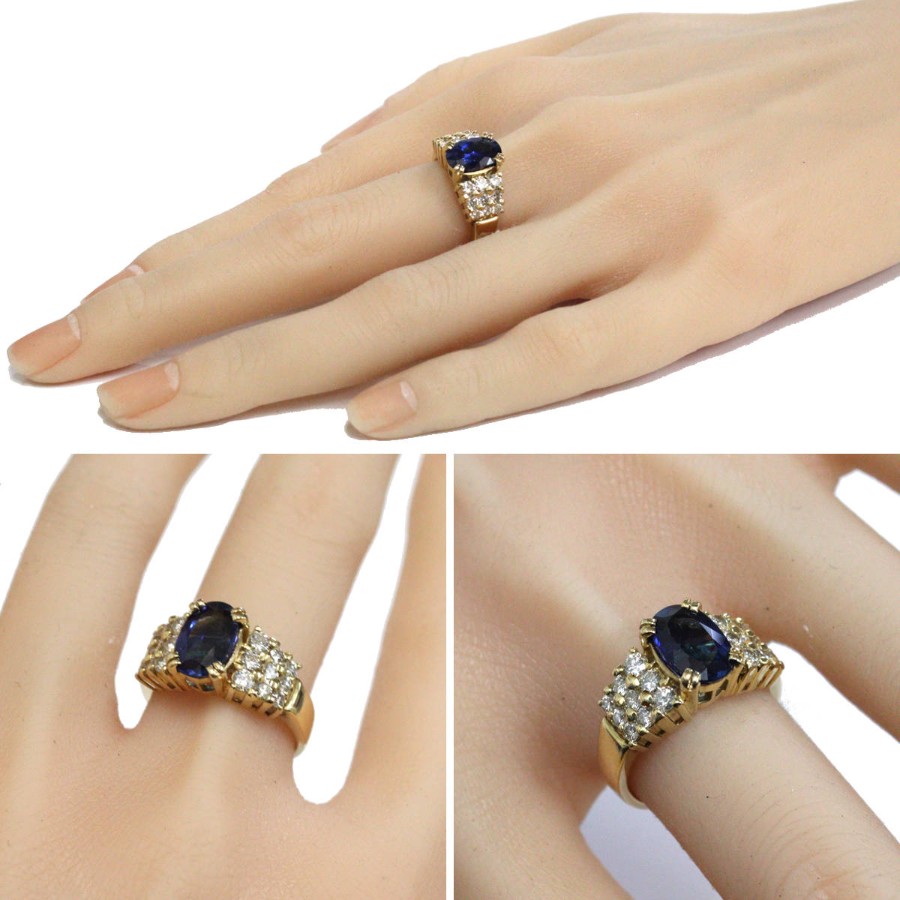 K18サファイアダイヤモンドリングの中古品です。天然のブルーサファイアと認めるソーティングが付属します。サファイアは彩度が高く非常に美しい青色です。肉眼ではわかりませんが、表面に傷や欠けがあります。ダイヤモンドはややインクルージョンがありますが、照りよく輝きます。地金には小傷があります。+---+---+---+---+---+。{状態}AB{素材}K18YG,サファイア,ダイヤモンド{サイズ}当店計測約#15{リング幅}約3-11mm。{その他}S2.643ct,D0.97ct,8.8g。{付属品}ソーティング{お問合せ商品番号}26036050+---+---+---+---+---+。
