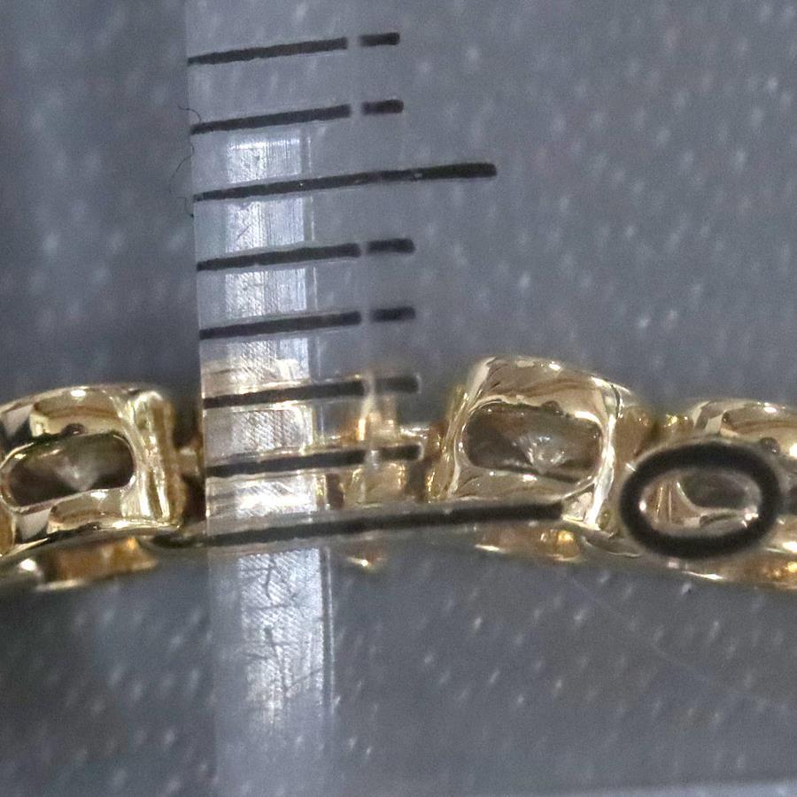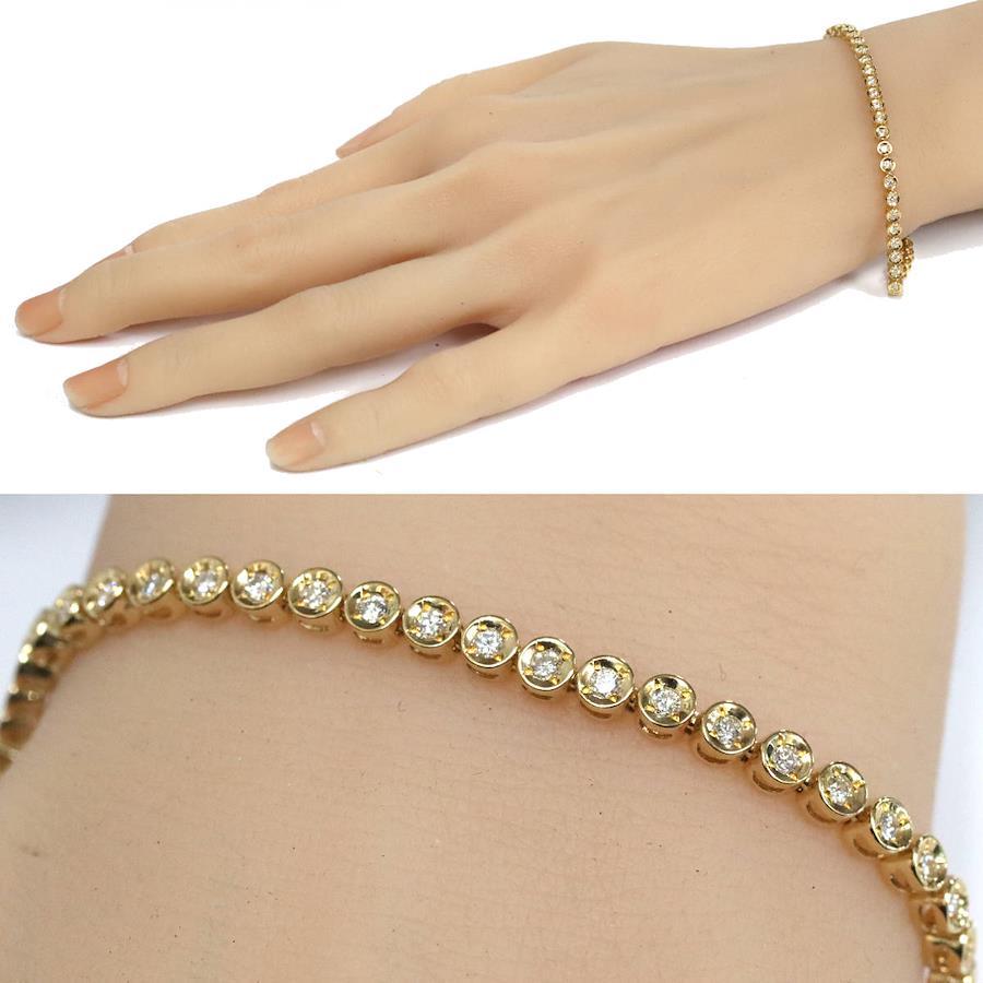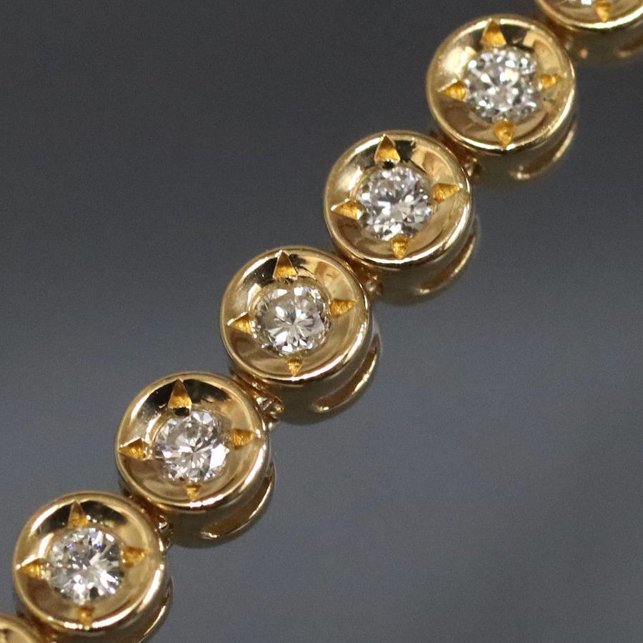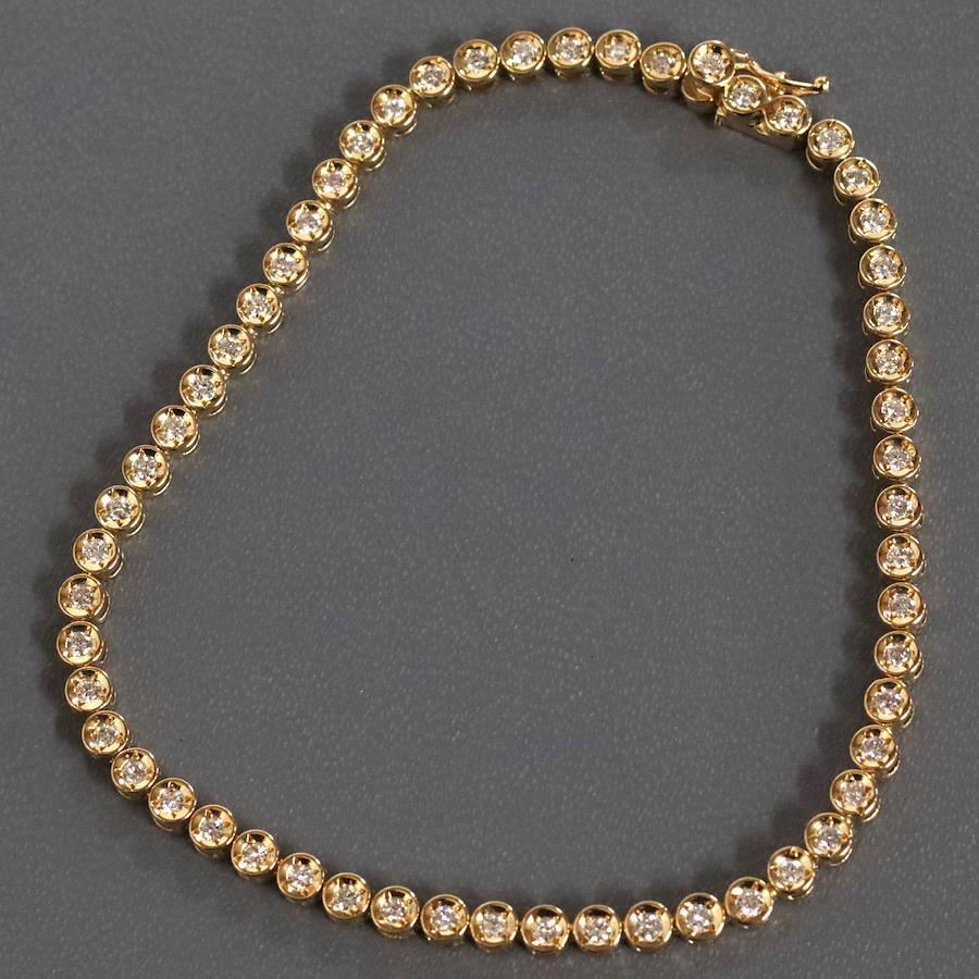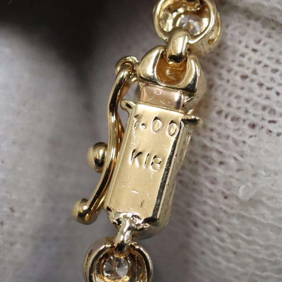 K18ダイヤモンドテニスブレスレットの中古品です。ダイヤモンドは全体的に肉眼では見えないインクルージョンがわずかにあります。ダイヤモンドは無色に近い色味で、照りよく輝きます。腕回りは約18.5cmです。地金には小傷があります。+---+---+---+---+---+。{状態}AB{素材}K18YG,ダイヤモンド{サイズ}約18.5cm。幅約3mm。{その他}D1.00ct,8.4g。{付属品}なし(サービス箱をお付けします){お問合せ商品番号}25106031+---+---+---+---+---+。