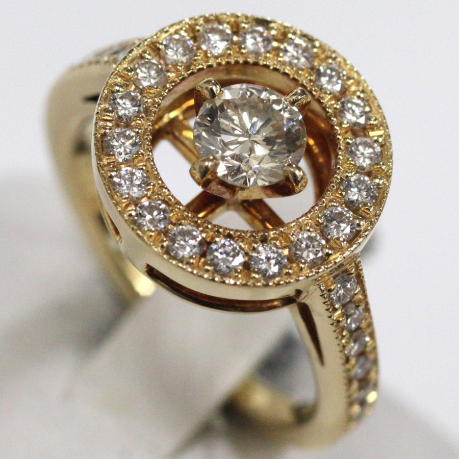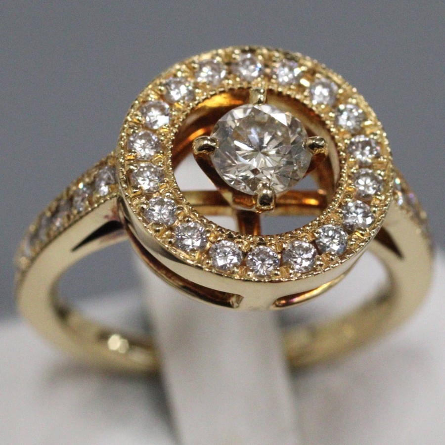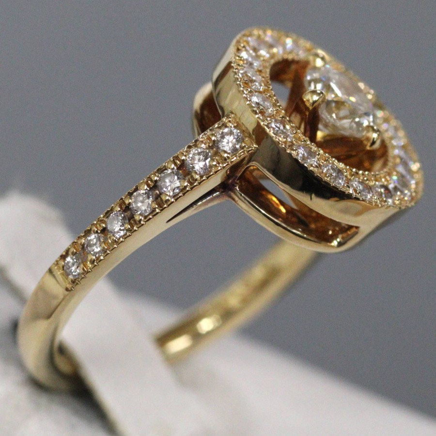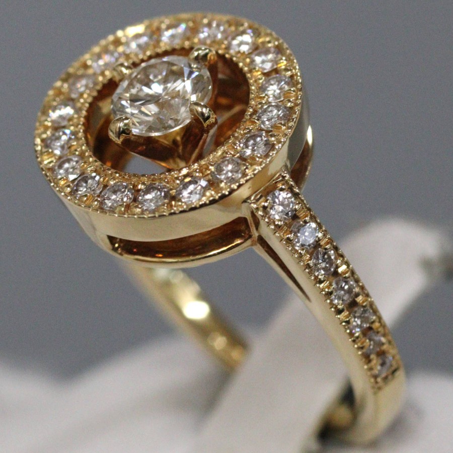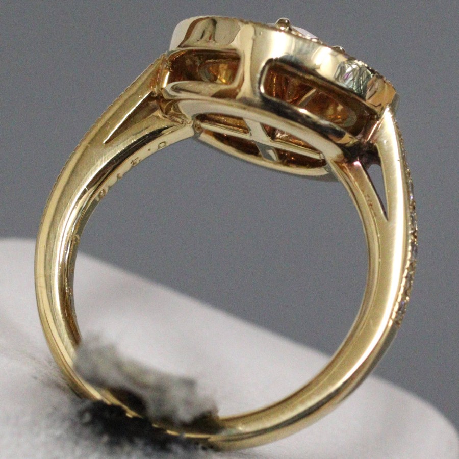 K18ダイヤモンドリングの中古品です。中石はわずかに黄色がかった色味で、ややインクルージョンがありますが、照りよく輝きます。メレダイヤモンドは無色に近い色味で、インクルージョンが少なく照りよく輝きます。リング底部に打ち痕があり、地金に小傷があります。+---+---+---+---+---+。{状態}AB{素材}K18YG,ダイヤモンド{サイズ}当店計測約#8{リング幅}約2-13mm。{その他}D0.416ct,D0.388ct,6.3g。{付属品}なし(サービス箱をお付けします){お問合せ商品番号}26036062+---+---+---+---+---+。