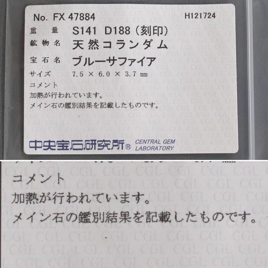 天然コランダムのブルーサファイアと鑑別されたソーティングが付属します。