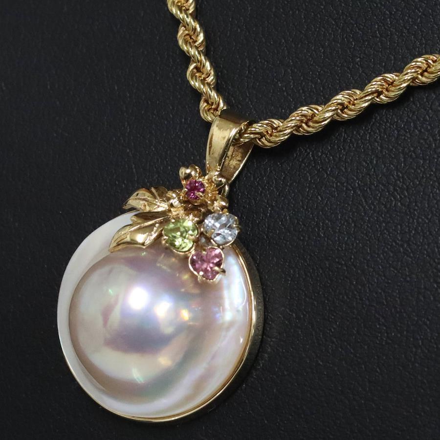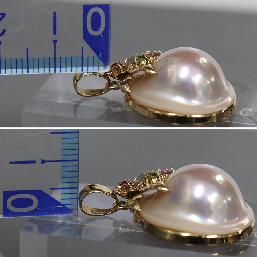 K18マベパールマルチカラーストーンペンダントトップの中古品です。マベパールはスライムのような形をしており、美しい輝きを放ちます。ルビーやペリドットなどの宝石がセットされています。地金には小傷があります。+---+---+---+---+---+。{状態}A{素材}K18YG,マベパール,マルチカラーストーン{サイズ}約W21mm × H31mm(バチカン含む){その他}5.5g。{付属品}なし(サービス箱をお付けします){お問合せ商品番号}26016025+---+---+---+---+---+。