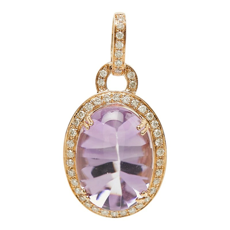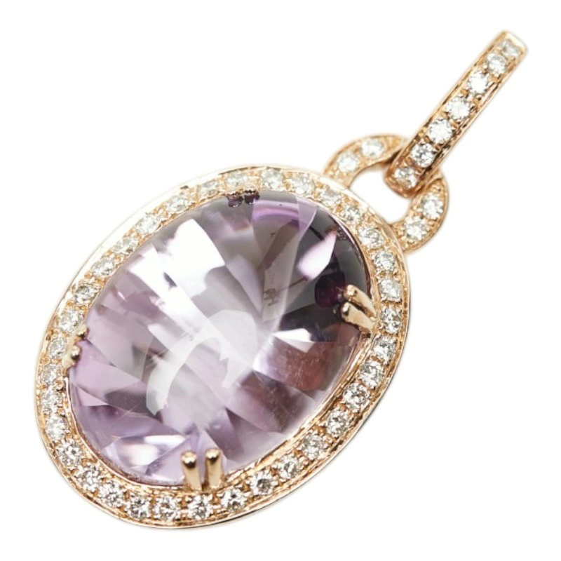 - K18PG ピンクゴールド アメジスト9.32ct ダイヤ0.32ct ペンダントトップ ネックレス レディース 【中古】