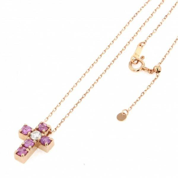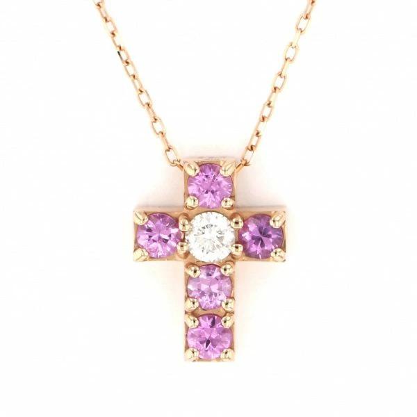 K18PG Pink Gold Sapphire Diamond OTHER Necklace Cross