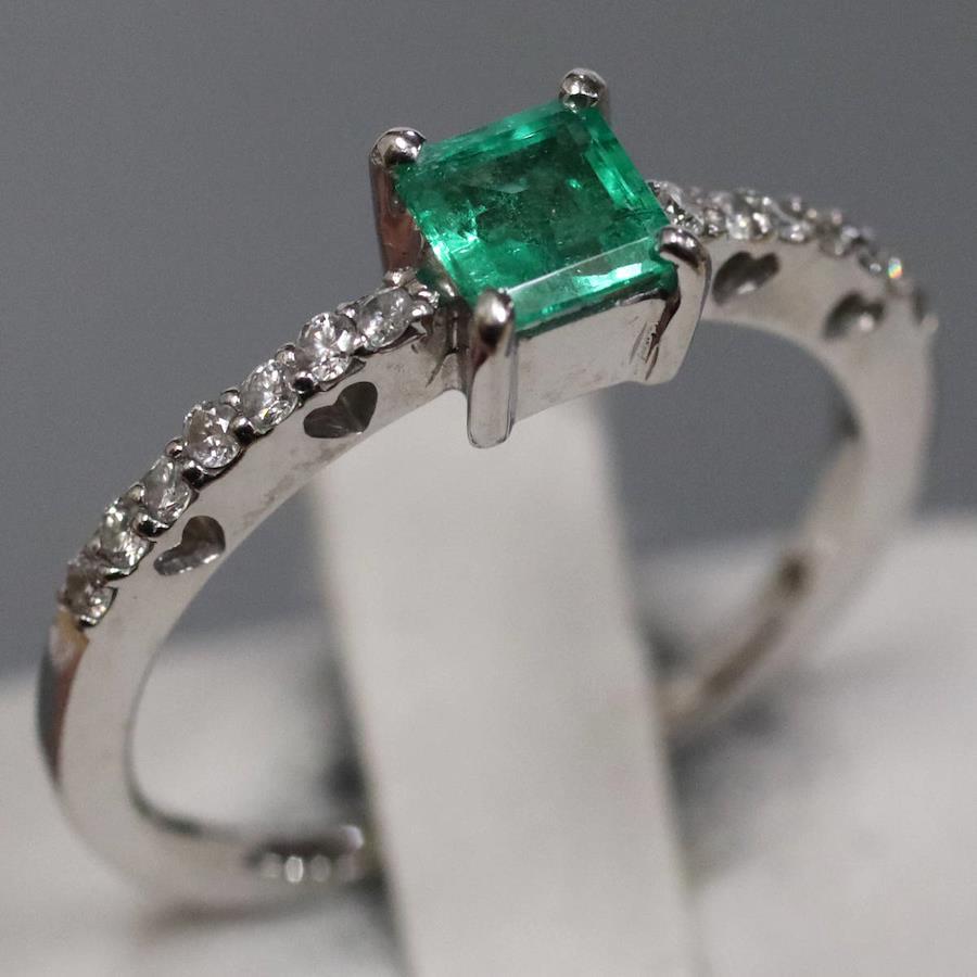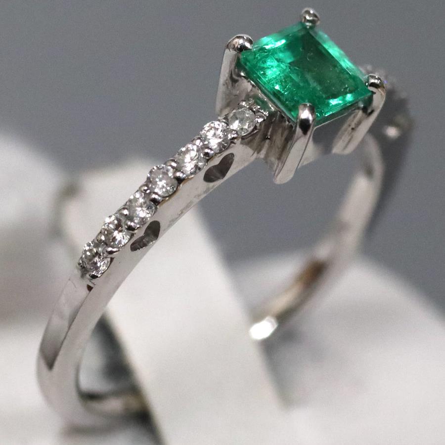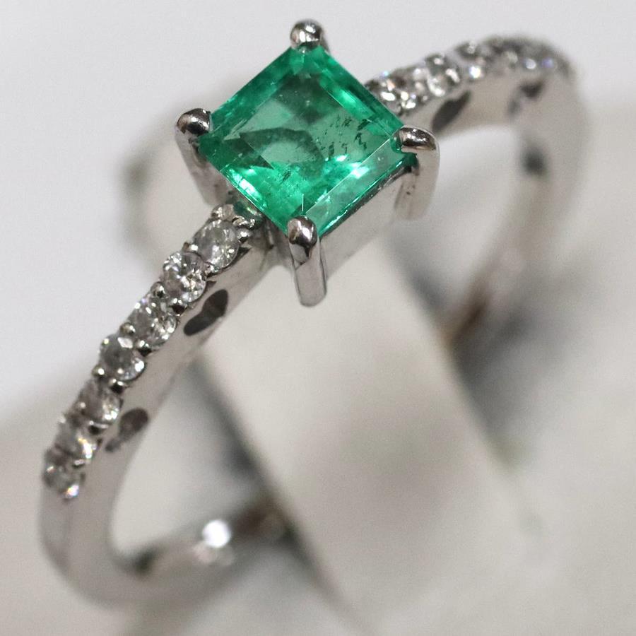 K18WGエメラルドダイヤモンドリングの中古品です。エメラルドは標準的な量のインクルージョンがあり、明度 透明度が高いです。ダイヤモンドはわずかにインクルージョンがあります。地金には小傷があります。+---+---+---+---+---+。{状態}AB{素材}K18WG,エメラルド,ダイヤモンド{サイズ}当店計測約#10{リング幅}約1-5mm。{その他}E0.35ct,D0.23ct,2.2g。{付属品}なし(サービス箱をお付けします){お問合せ商品番号}26013135+---+---+---+---+---+。