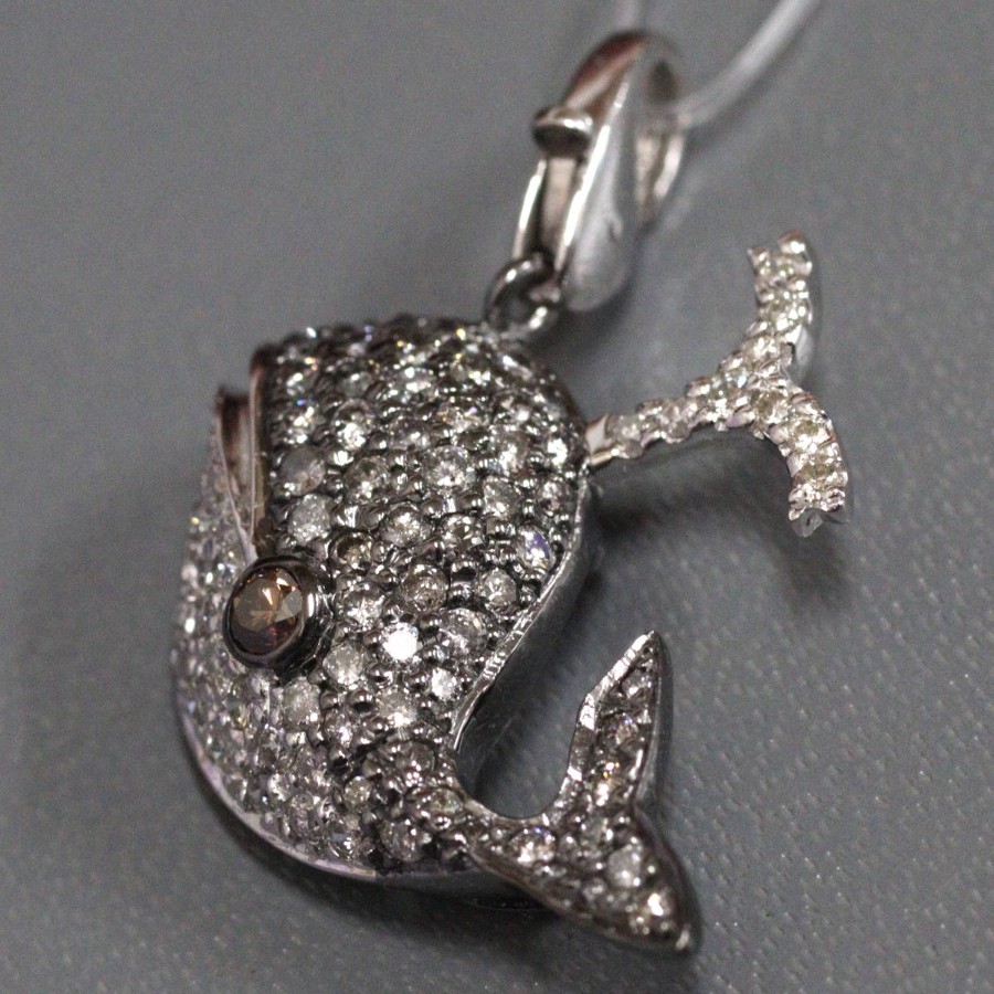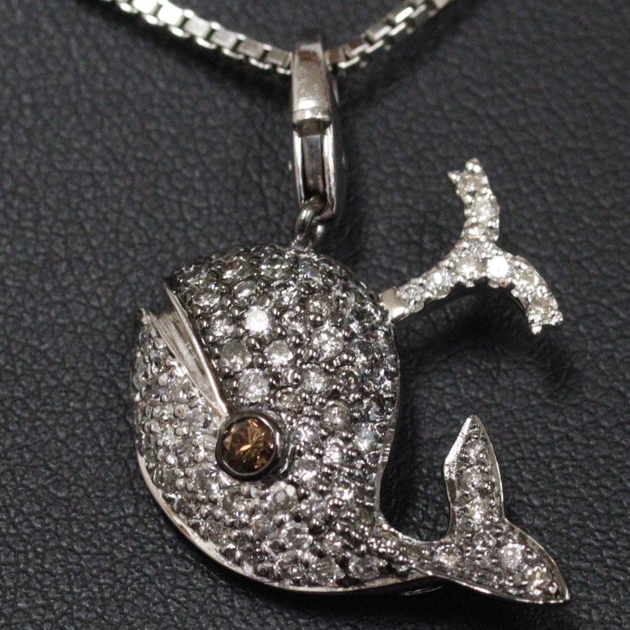 K18WG Diamond Pendant Top, Whale Motif, D1.00, 3.6g