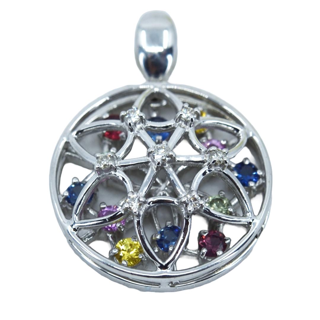 | アイテム名 | 【中古】K18WG フラワーオブライフ 色石・ダイヤ付きペンダントトップ 新品仕上げ済み |