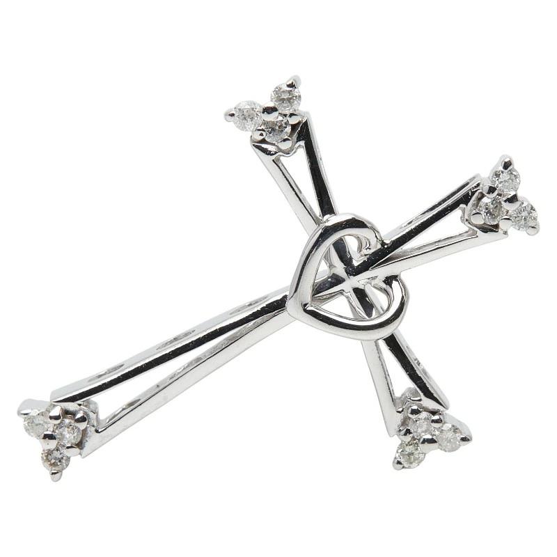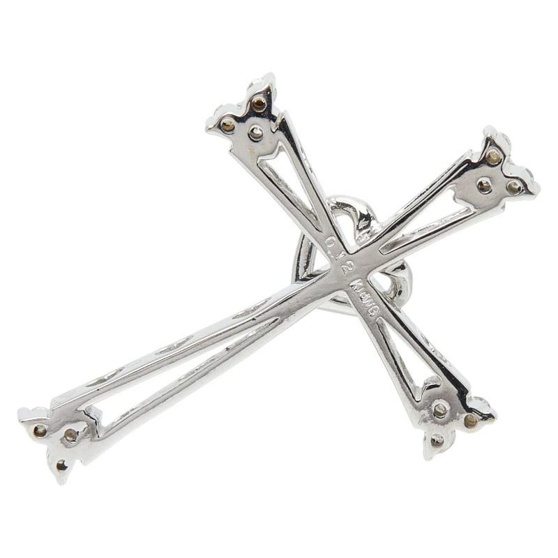 - K18WG ホワイトゴールド ダイヤ0.12ct クロスモチーフ ペンダントトップ ネックレス レディース 【中古】