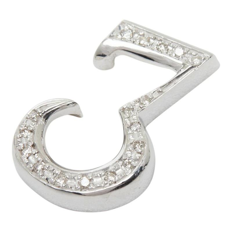 - K18WG ホワイトゴールド ダイヤ0.13ct 3 ナンバー3 スリー イニシャル ペンダントトップ ネックレス ユニセックス 【中古】