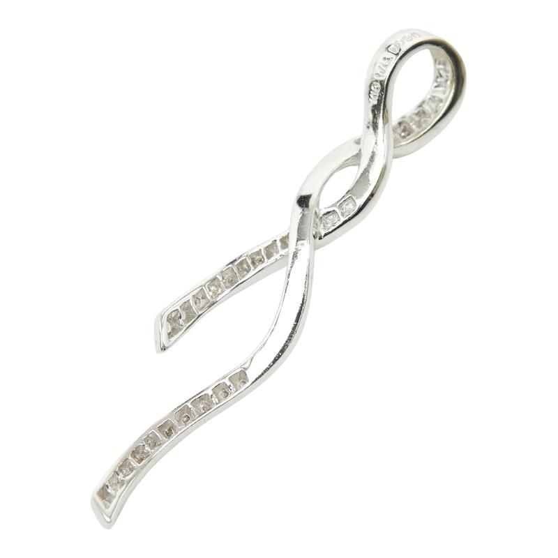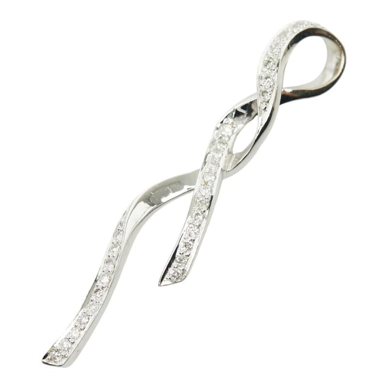 Pre-owned 18K White Gold 0.30ct Diamond Necklace with Ribbon Motif Pendant for Women