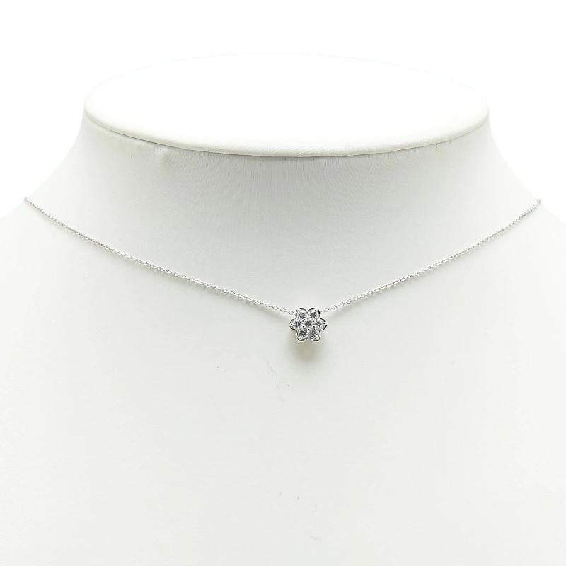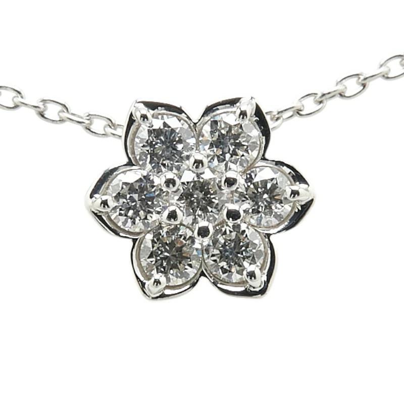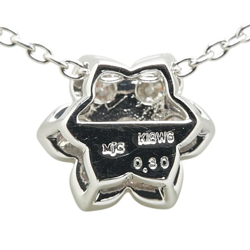 Pre-owned 18K White Gold 0.30ct Diamond Flower Motif Pendant Necklace for Women