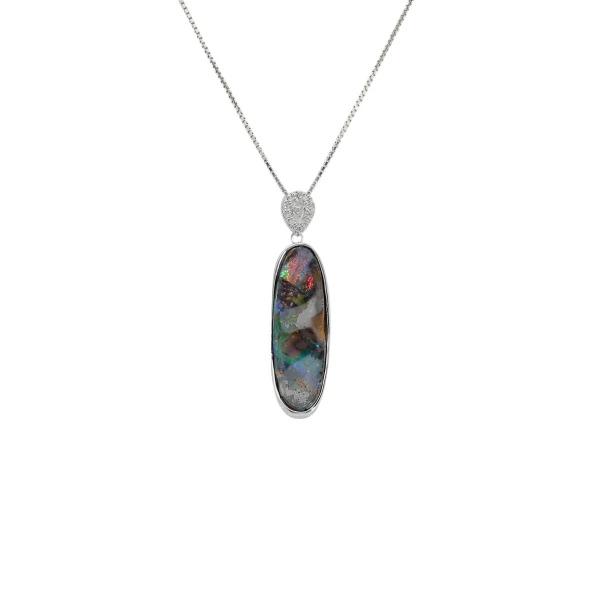 K18WG White Gold Boulder Opal Diamond OTHER Necklace