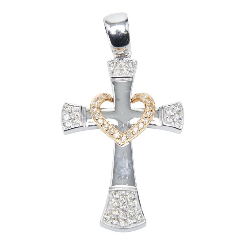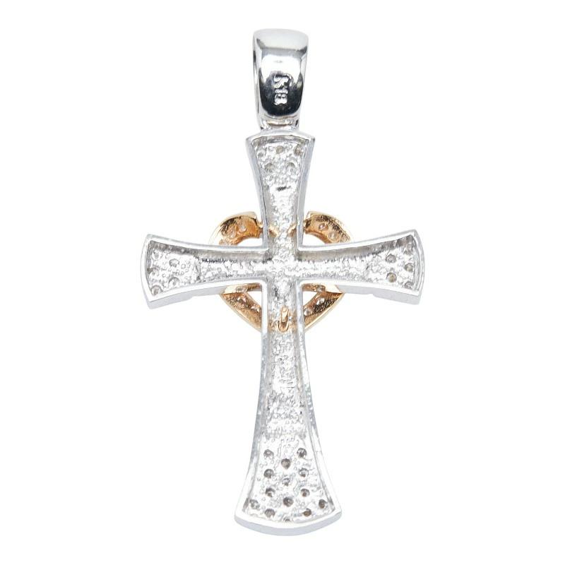 - K18WG ホワイトゴールド K18YG イエローゴールド ダイヤ0.65ct クロスモチーフ ペンダントトップ ネックレス レディース 【中古】