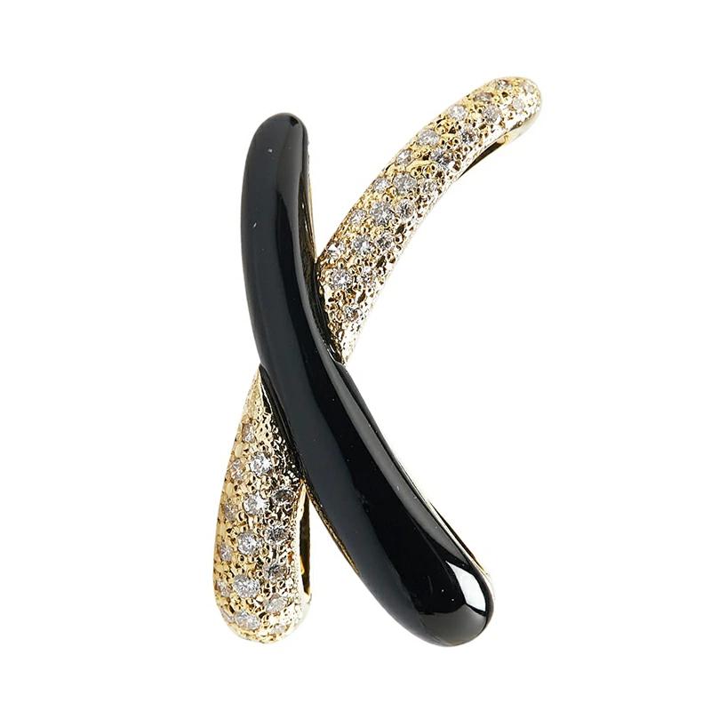 Pre-owned 18K Yellow Gold Onyx and 0.49ct Diamond Pendant for Women